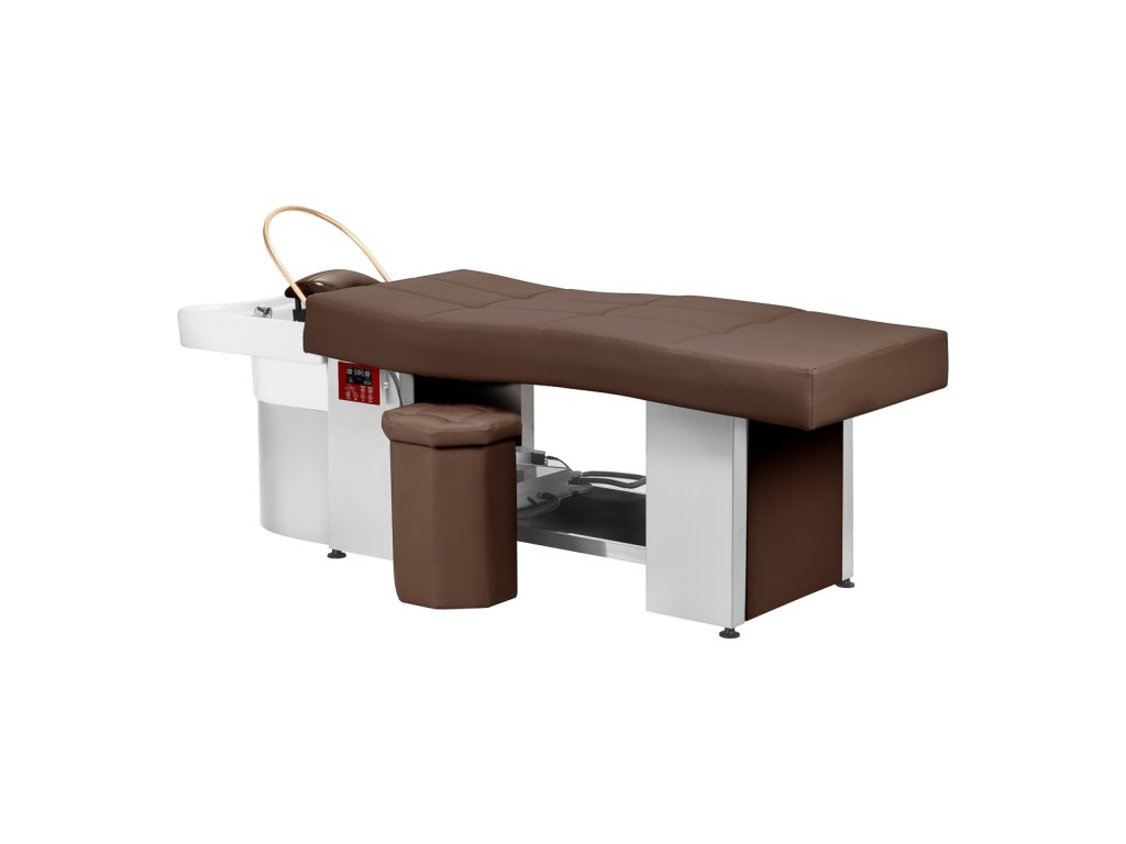 Lehátko Head Spa 017 SPA je kombináciou funkčnosti a moderného dizajnu. Je vybavenépevný rám z nehrdzavejúcej ocele, zaručuje stabilitu a odolnosť. Ergonomicky profilované ležadlo je potiahnuté mäkkou syntetickou kožou v odtieňoch hnedej farby, čo zaručujemaximálny komfort počas liečby. Okrem toho priestor pod ležadlom umožňuje pohodlné skladovanie kozmetiky a príslušenstva, čím sa stávavynikajúca voľba pre profesionálne salóny krásy a wellness.