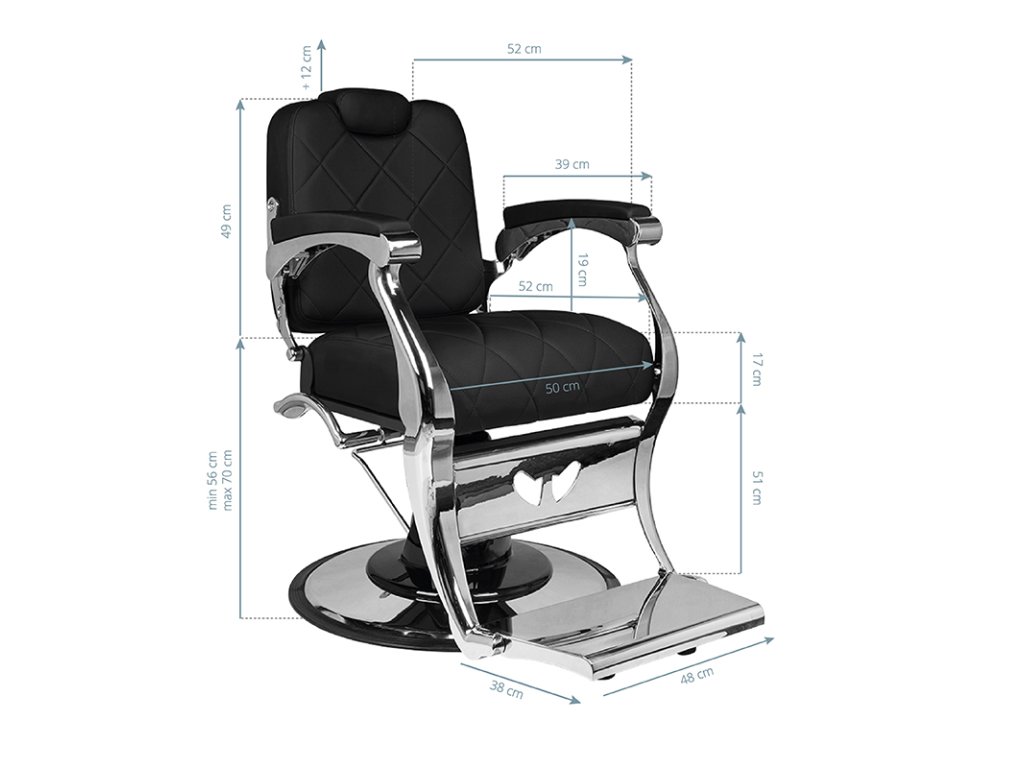 Stoličku podopiera ťažká liatinová základňa, ktorá poskytuje dokonalú stabilitu aj pri veľkom zaťažení, takže je spoľahlivým a dlhotrvajúcim doplnkom vášho holičstva.