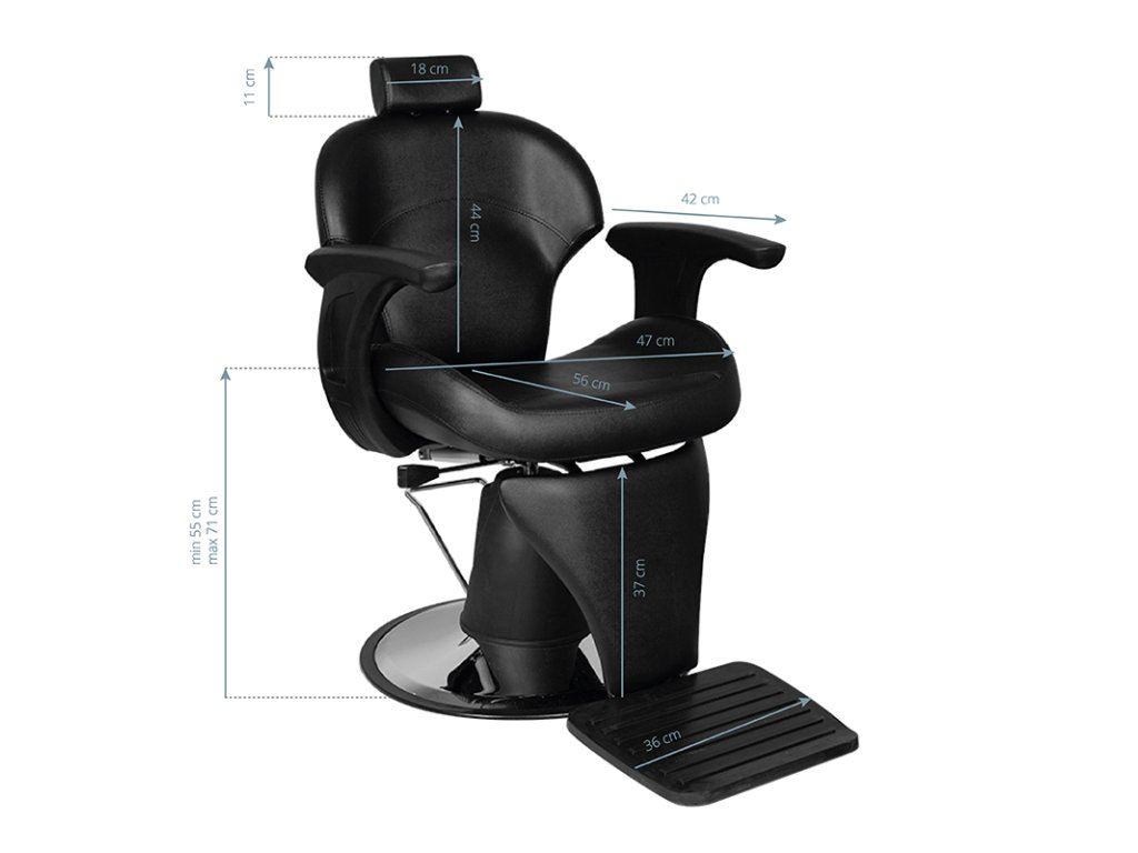 Elegantný čierny dizajn vyžaruje modernú sofistikovanosť a robí z kaderníckeho kresla Igor výrazný kúsok vo vašom salóne. Vylepšite svoj priestor, pozdvihnite úroveň svojich služieb a predveďte svoj jedinečný štýl s týmto výnimočným kusom nábytku.