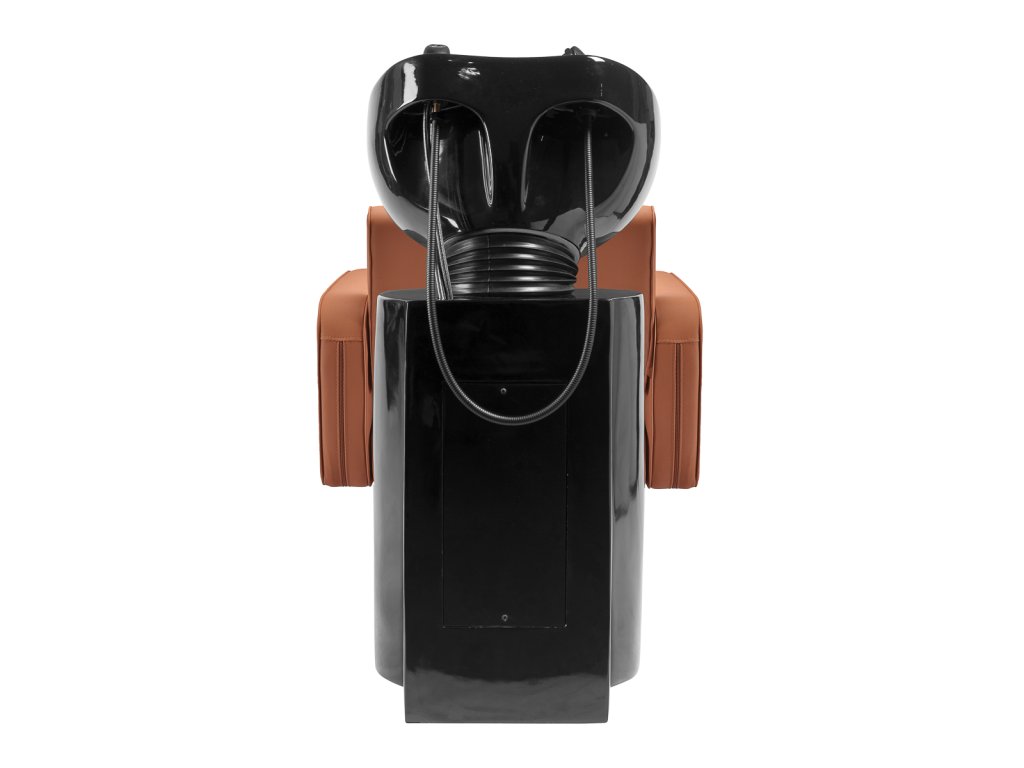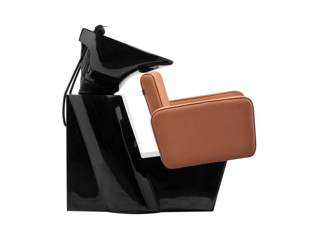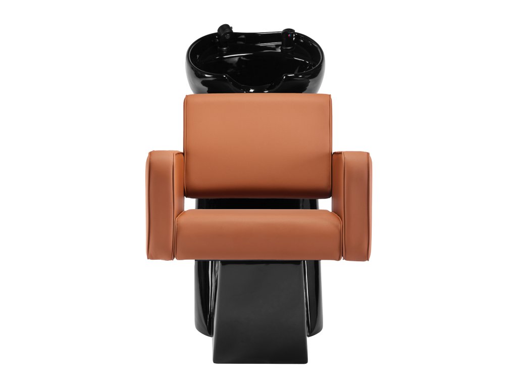 Geometrický tvar stoličky s jemne zaoblenými hranamispája jednoduchosť a pohodlie v modernom dizajne. Hranaté sedadlo a jemne sklonené opierky rúk vytvárajúharmonický celok, čím sa zabezpečí pohodlná poloha počas ošetrenia.Opierka chrbta s optimálnym uhlom sklonu, podporuje správne držanie tela a umožňuje úplné uvoľnenie. Vysokokvalitné hnedé čalúnenie zo syntetickej kože je odolné a ľahko čistiteľné. Geometrický, moderný tvar nábytkuzdôrazňuje elegantný charakter umývacej jednotky a dokonale ladí s dizajnom interiéru salónu. Súprava obsahuje kompletnú sadu príslušenstva s matnou čiernou povrchovou úpravou vrátane batérie, sprchovej hlavice a zodpovedajúcich hadíc, čo zaručujekompletná sada nástrojovpre túto prácu.