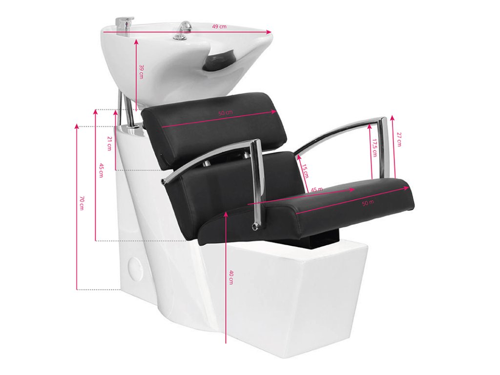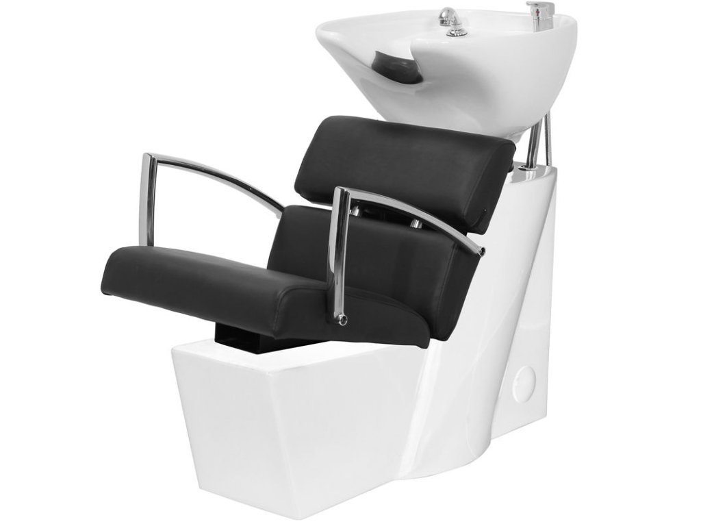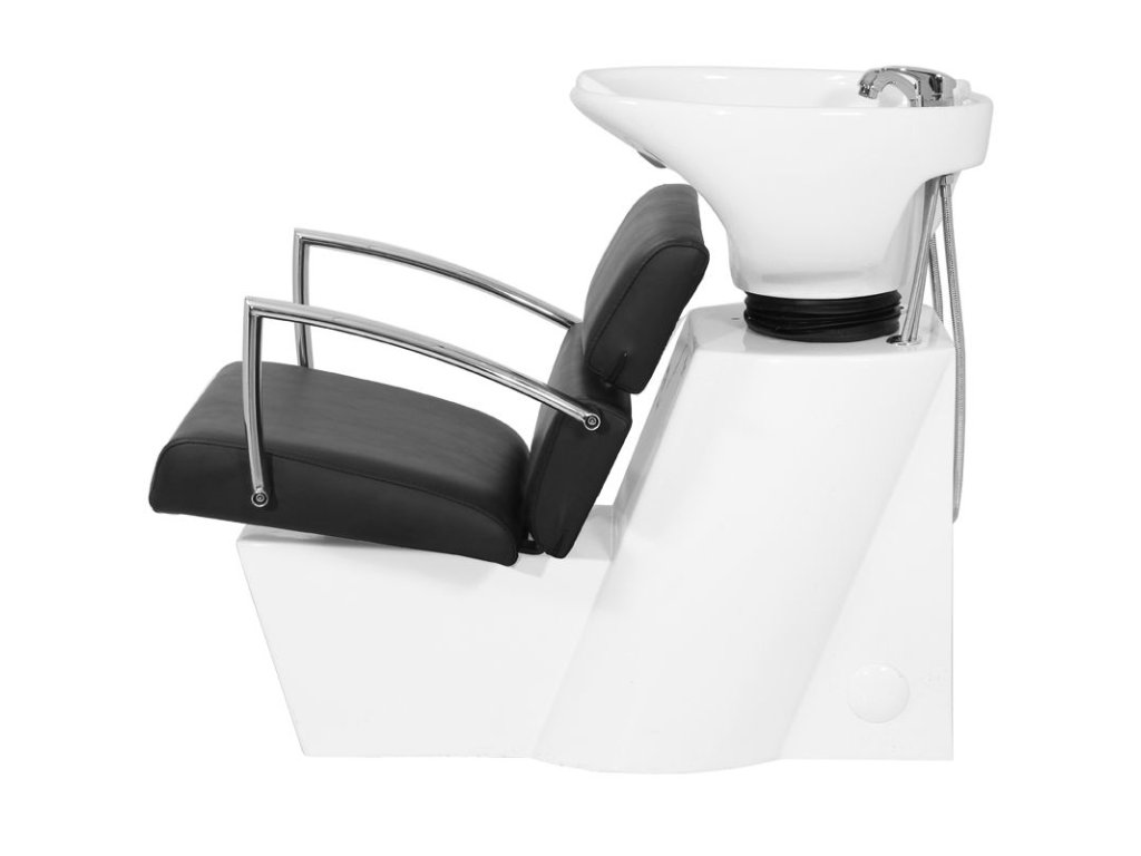 profesionálna kadernícka umývačka - stabilná, mimoriadne pohodlná, pevne skonštruovaná. moderný dizajn z nej robí krásny doplnok vybavenia moderného kaderníckeho salónu. sedadlo z kvalitnej hnedej ekokože. silikónová podložka pod hlavu stabilizuje hlavu klienta a umožňuje jej pohodlné umiestnenie na umývačke. biela misa myki s možnosťou nastavenia jej sklonu. čierna umývačka