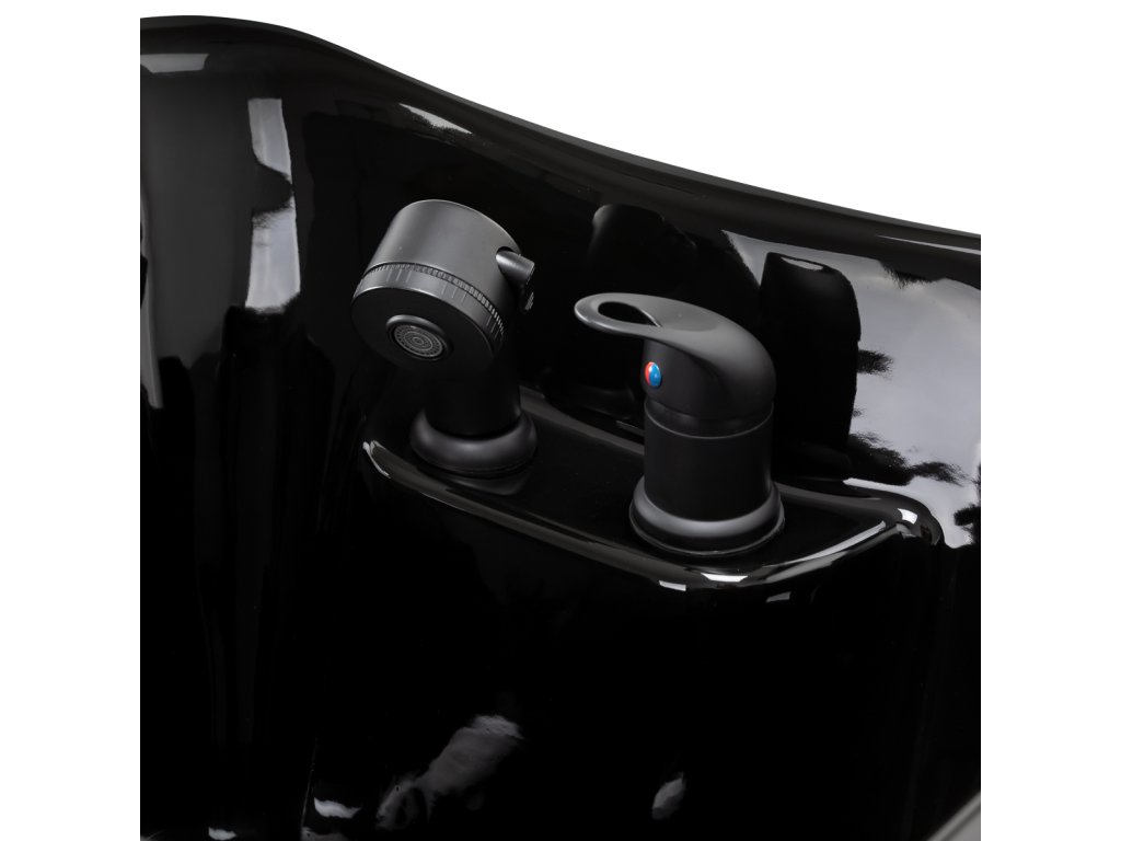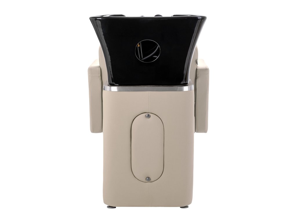 Keramická miska v odtieňoch čiernej farby smoderný tvar a primeranú hĺbku,účinne zabraňuje striekajúcej vode a produkty používané počas liečby, čo umožňuje pohodlné a účinné poskytovanie širokej škály služieb. Správne profilovaný golier a šikmé operadloposkytujú pohodlie a podporu počas umývania vlasov, zatiaľ čo čierny plastový kryt chráni zákazníka pred studeným keramickým povrchom,zabezpečenie príjemného zážitku počas liečby.
