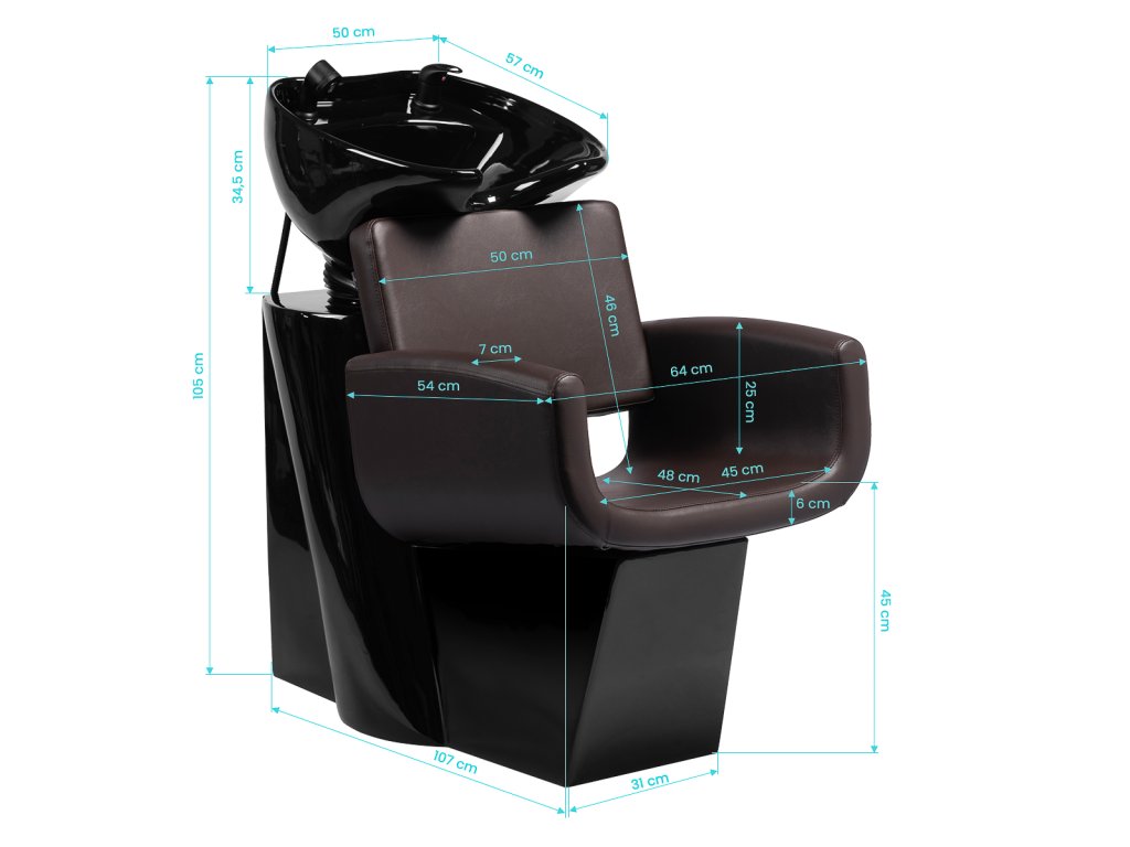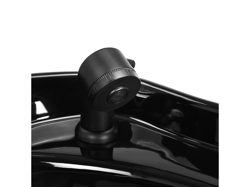 Hlboká keramická misa v odtieňoch čiernejznižuje striekajúcu vodu a kozmetiku používanú počas ošetrenia. Nastaviteľný uhol sklonuumožňuje prispôsobenie individuálnym potrebám. Odolný materiál je odolné voči škvrnám, poškriabaniua chemikálií a vďaka hladkému povrchu sa ľahko čistí. Ergonomicky tvarovaný golierposkytuje pohodlnú oporu hlavy.