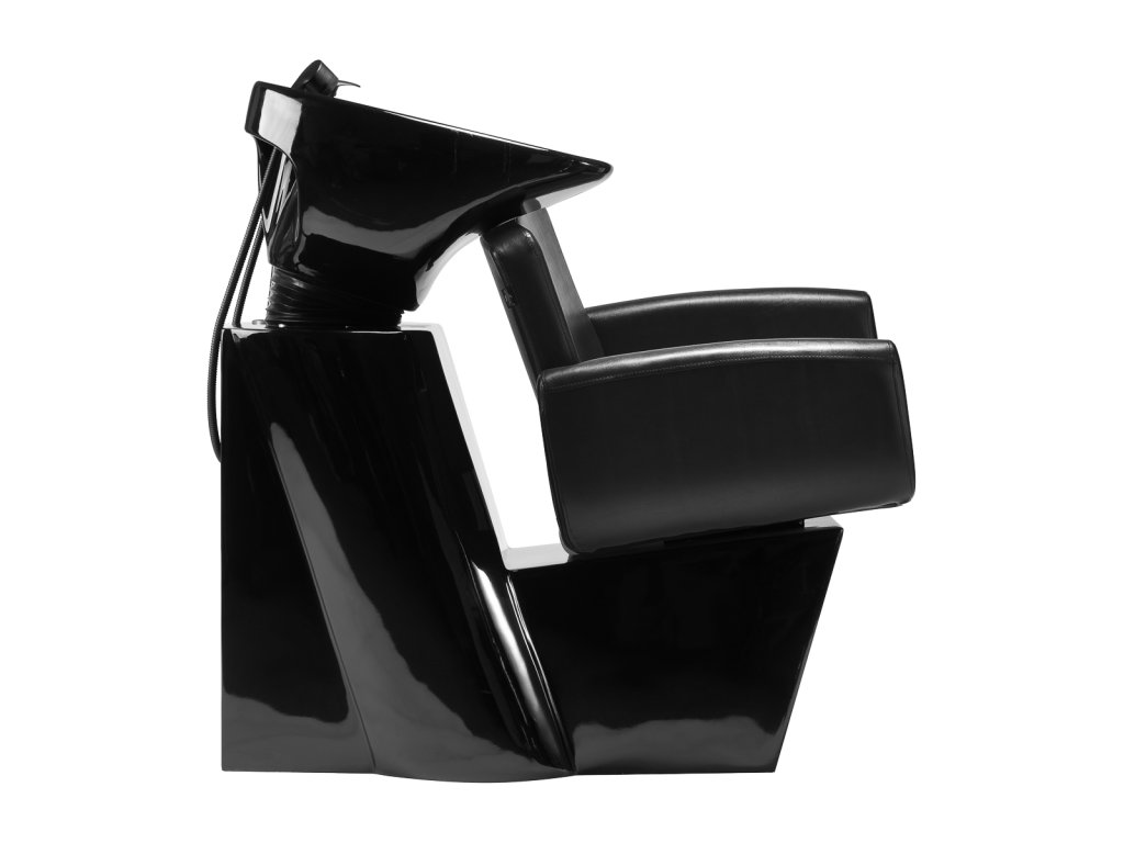 Táto minimalistická stolička s výrazne zaobleným sedadlomspája jednoduchý tvar s vysokým komfortom. Opierka chrbta s optimálnym uhlom sklonu,podporuje prirodzenú polohu tela. Čalúnenie z vysokokvalitnej syntetickej kože v odtieňoch čiernej farby je odolné a ľahko čistiteľné. Moderný dizajn nábytkuzdôrazňuje elegantný charakter umývacej jednotky a dokonale dopĺňa zariadenie salónu. Súprava obsahuje kompletnú sadu armatúr s matnou povrchovou úpravou v odtieňoch čiernej farby vrátane batérie, sprchovej hlavice a zodpovedajúcich hadíc, ktoré poskytujúkompletná sada pracovných nástrojov.