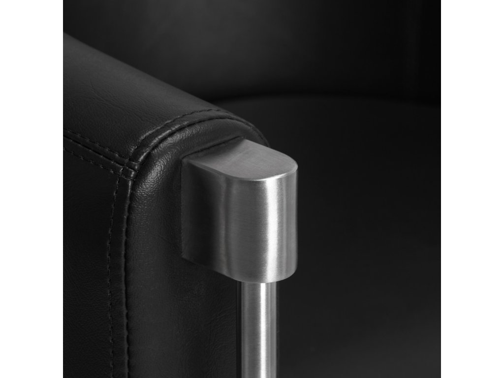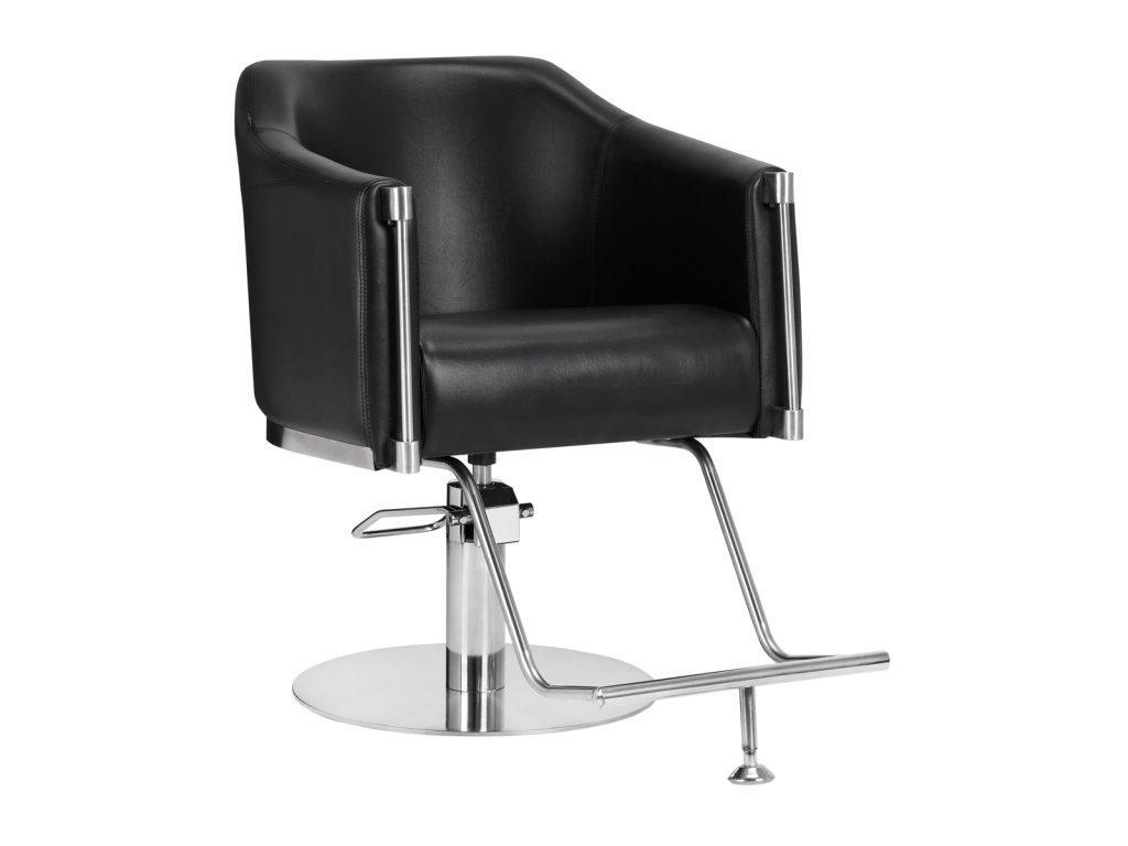 Pevná okrúhla základňa zabezpečuje stabilitu počas používania. Vďaka hladkému povrchu je táto položka ľahko sa udržiava v čistote. Široké sedadlo vyplnené penou správnej tvrdosti zaručujevysoký komfort a pohodlie aj počas dlhotrvajúcich ošetrení. Opierky na ruky sú v správnej výške, čo umožňujesprávna poloha ramien klienta - to znamená, že neskrýva hlavu v náručí ani sa nehrbí - jednoznačne zlepšuje liečbu vrátane strihania vlasov. To uľahčujepresné vykonávanie služieb.