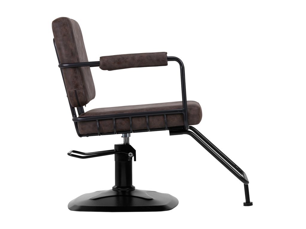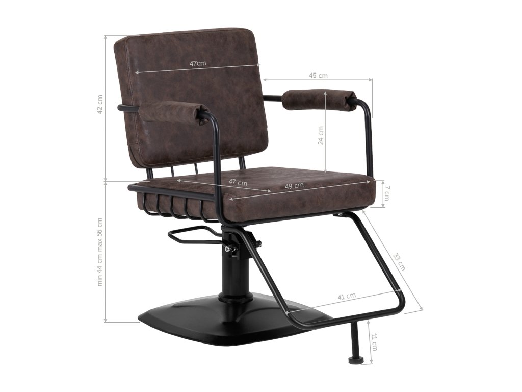 Nábytok v štýle loftu je vyplnená odolnou penou odolnou proti deformácii a čalúnenie je vyrobené z na dotyk príjemnej syntetickej kože v odtieňoch hnedej farby. Použité materiály zaručujúpohodlné používanie nábytku na dlhú dobu a aby zariadenieodolné voči vlhkosti, trvanlivé a ľahko sa čistia. Kovové prvky v čiernych odtieňoch mu dodávajú výraz surovej elegancie. Moderné kadernícke kreslo Gabbiano Katania Loft sa vyznačujeminimalistický dizajn, ktorá mu dodáva jedinečný charakter a vďaka ktorej kreslo vyzerá skvele v mnohých kaderníckych salónoch.