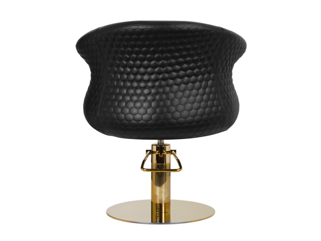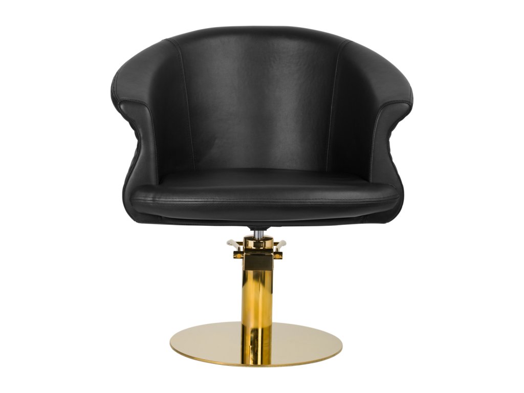 Pevná kruhová základňa zaručuje stabilitu nábytku. Vďaka hladkému povrchu so zrkadlovou úpravou je tento prvokľahko sa udržiava v čistote. Pohodlné sedadlo s penovou výplňouzaručuje vysoký komfort používania aj počas mnohých hodín ošetrenia.Mechanizmus úplného otáčania zefektívňuje a spríjemňuje prácu kaderníka. Opierky na ruky umiestnené vo vhodnej výške umožňujúsprávna poloha ramien klienta - to znamená, že nezakrýva hlavu do ramien a nehrbí sa -jednoznačne uľahčuje presné vykonávanie ošetrení, vrátane strihania vlasov.