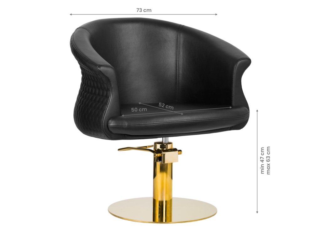 Vizuálne zaujímavý kus nábytku je naplnenýtrvanlivá pena odolná voči deformáciáma čalúnenie je vyrobené zsyntetická koža príjemná na dotyk v odtieňoch čiernej. Vďaka použitým materiálom je zariadenieodolné, pohodlné používanie, odolné voči vlhkosti a ľahko sa čistia. Ozdobné prešívanie s päťuholníkmi a pútavý tvar mu dodávajújedinečný charakter. Kadernícke kreslo Gabbiano Wersal sa vyznačuje sofistikovaný dizajn vďaka čomu stolička vyzerá skvele v mnohých elegantných salónoch.