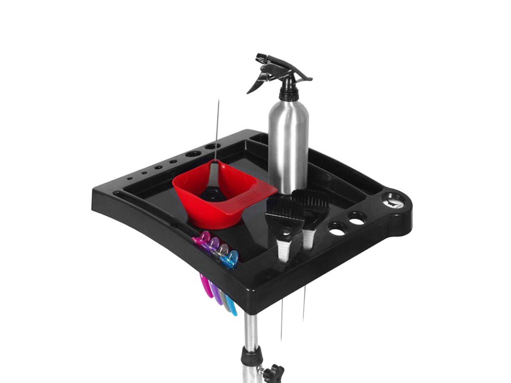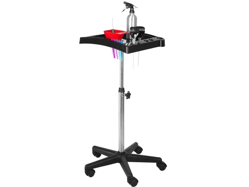 čierny kadernícky asistent. stabilná konštrukcia zaistí dlhodobé používanie. stôl osadený na vodiacich kolieskach, vďaka ktorým bude mať náradie vždy po ruke.