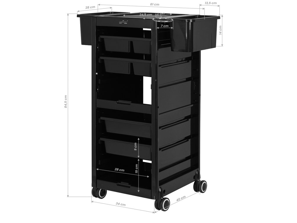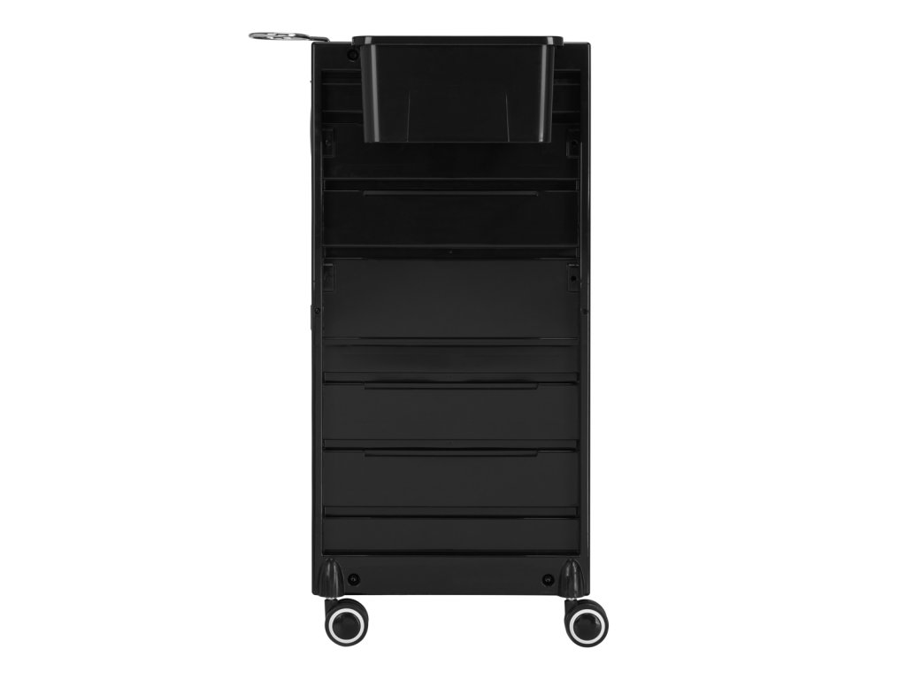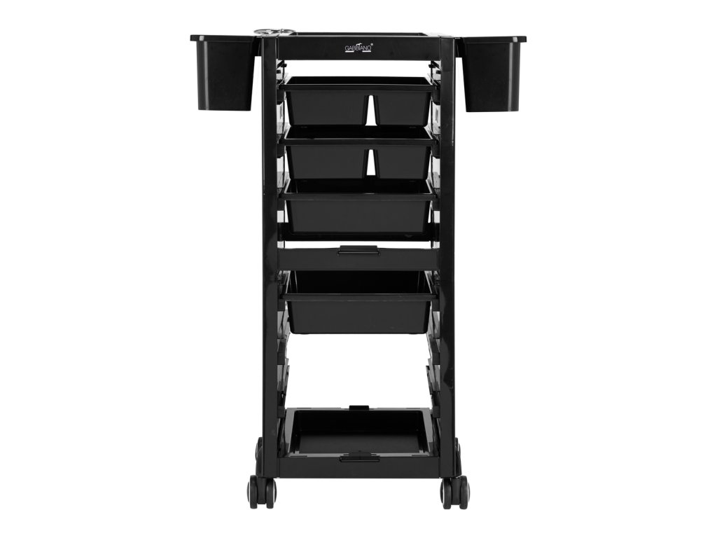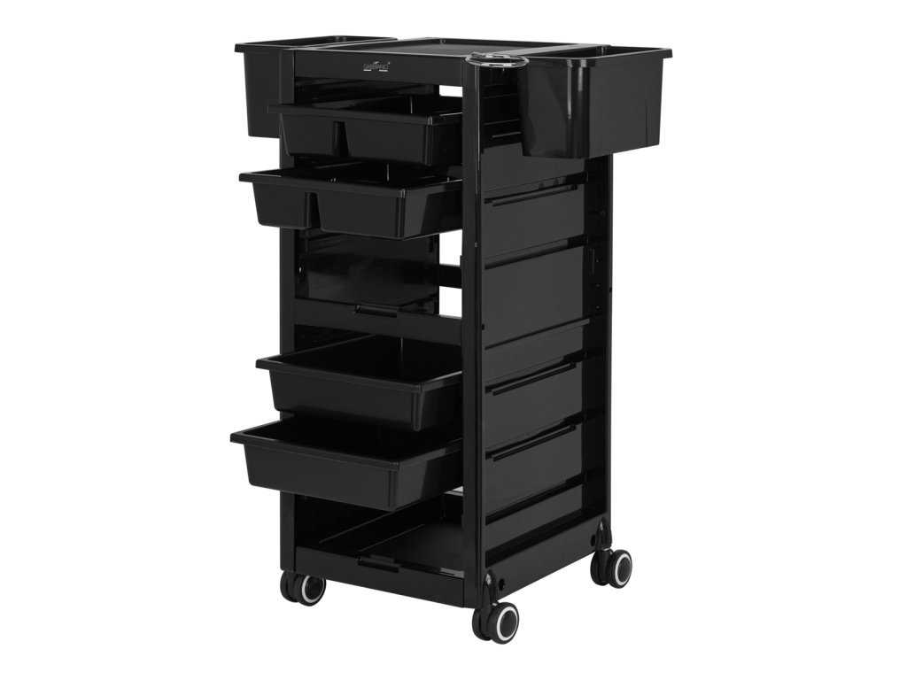 Jednoduchý štýl pomocníka je vhodný do každého interiéru. Vyrobené z ľahko čistiteľný, odolný materiál, tento kus nábytku v čiernych odtieňoch výrazne zlepší prácu v každom kozmetickom salóne.Pogumované kolesá poskytuje mobilitu, čo mu umožňujevoľne a plynulo sa pohybovať podľa potreby - či už počas ošetrenia v okolí kaderníckeho kresla, alebo pri jeho odkladaní po skončení služby. V prípade potreby sa dajú aj ľahko demontovať. Tento pomocník bude užitočný najmä pre tých, ktorí si vysoko ceniafunkčnosť.