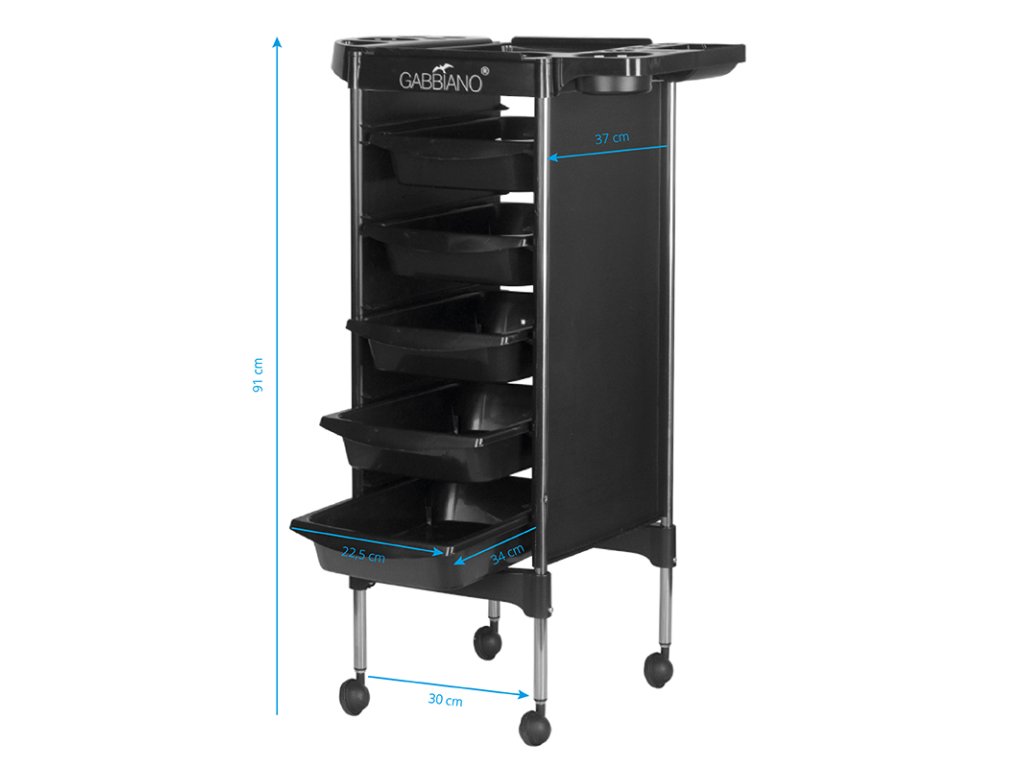 Kadernícky asistent Gabbiano je kvalitný kus nábytku. Je vyrobený z odolného materiálu ABS s oceľovou rámovou konštrukciou, ktorá zabezpečuje vysokú stabilitu a odolnosť. Celý je upevnený na praktických plastových kolieskach. Klasická čierna farba sa bude dokonale hodiť k zariadeniu vášho interiéru!