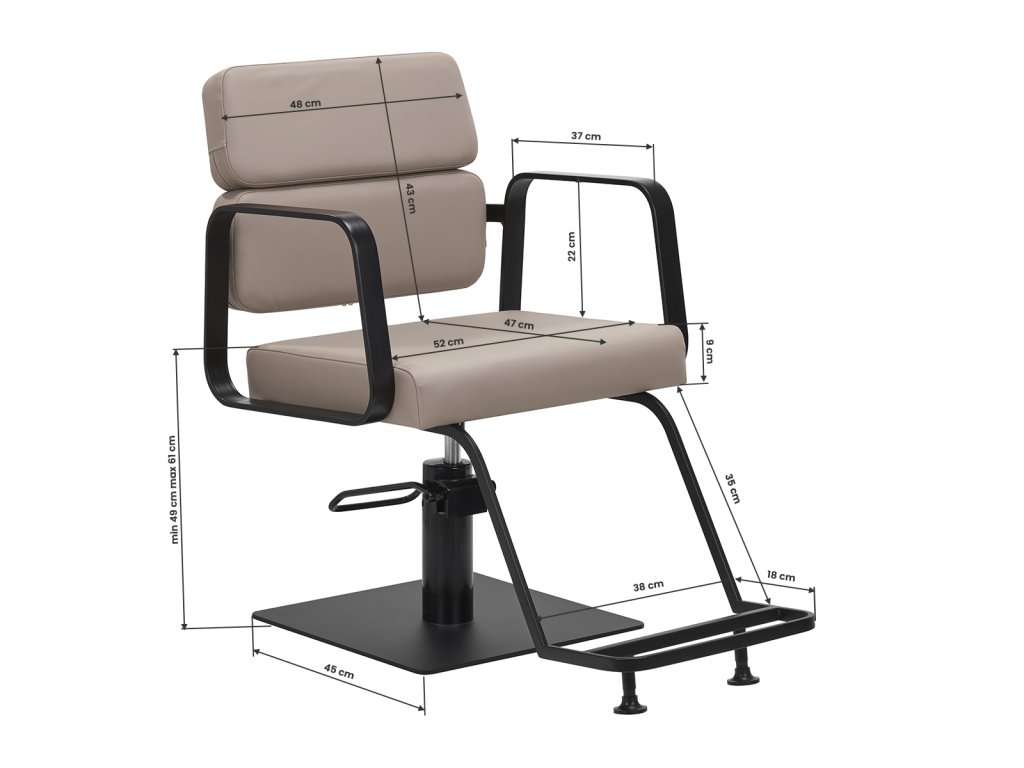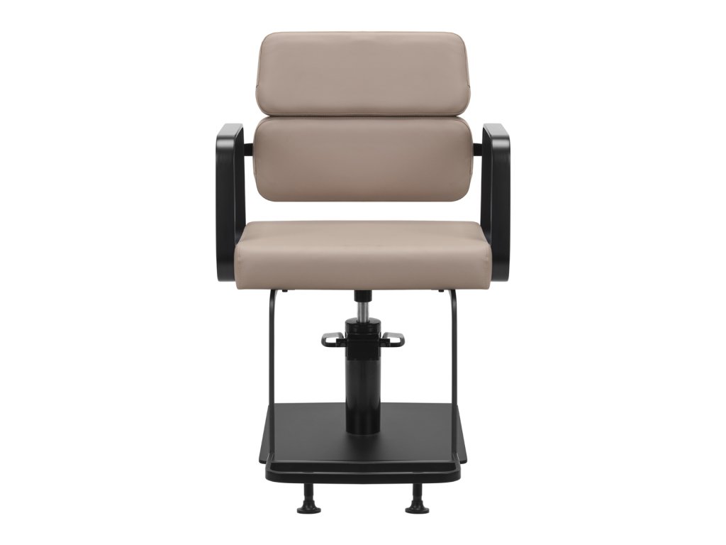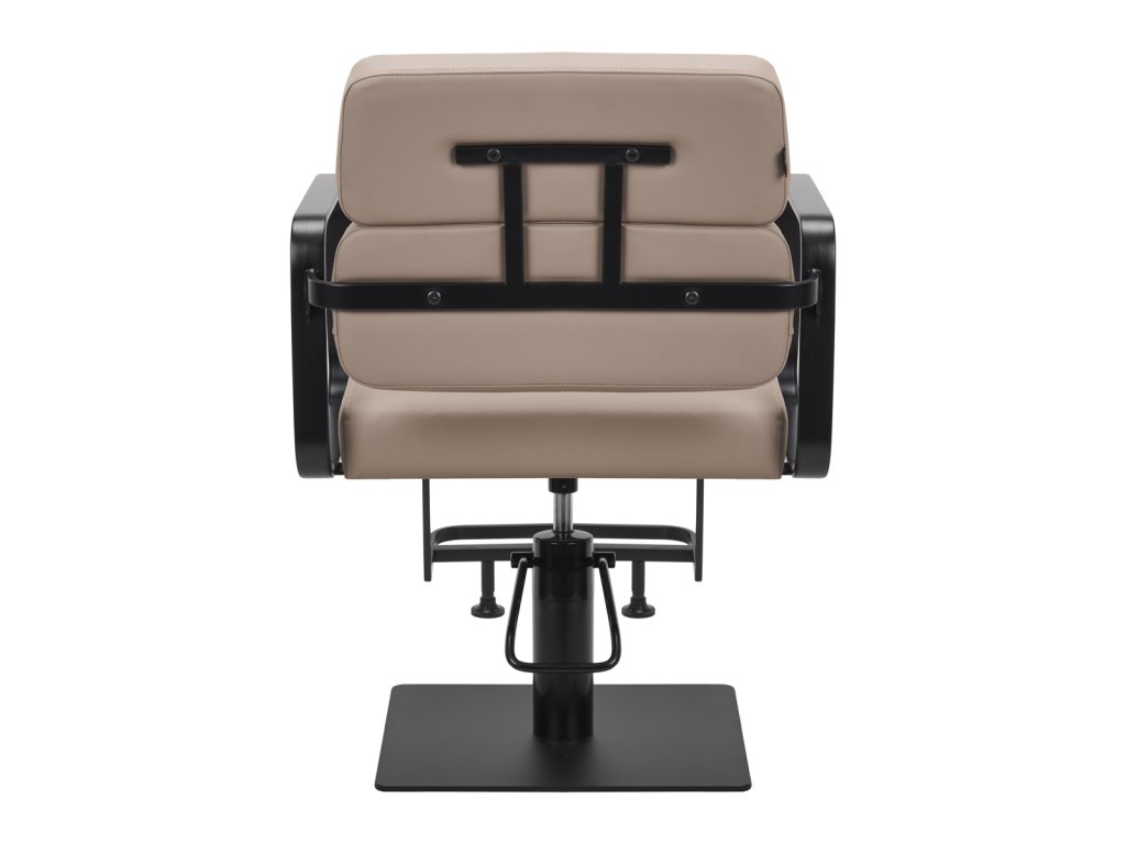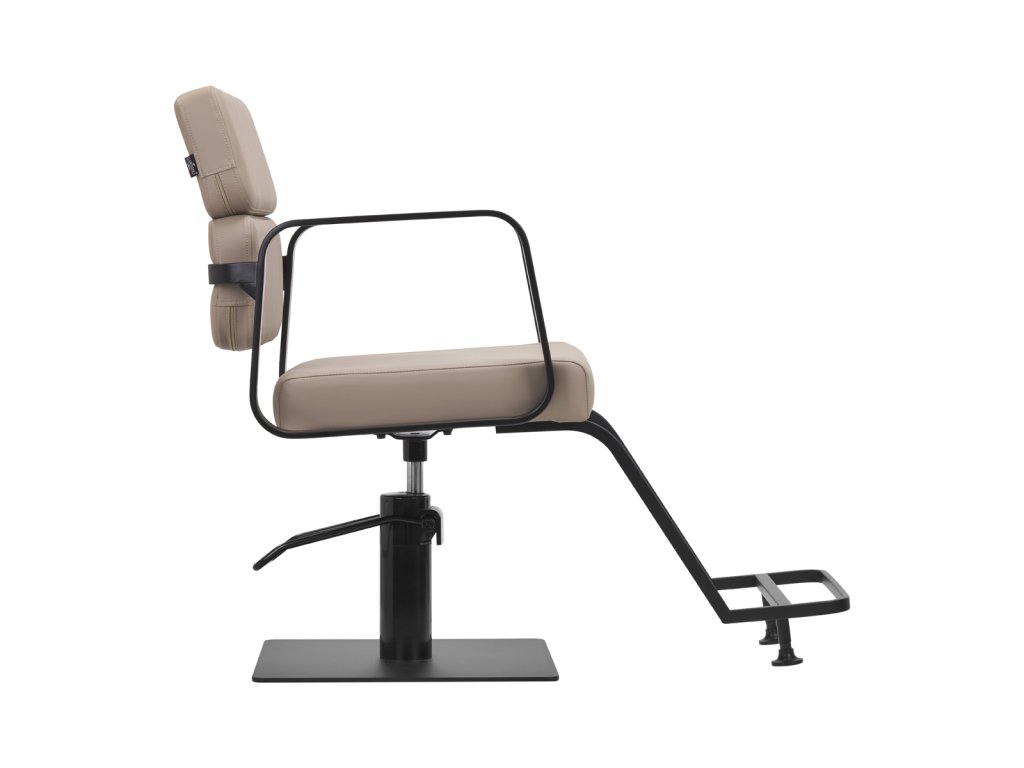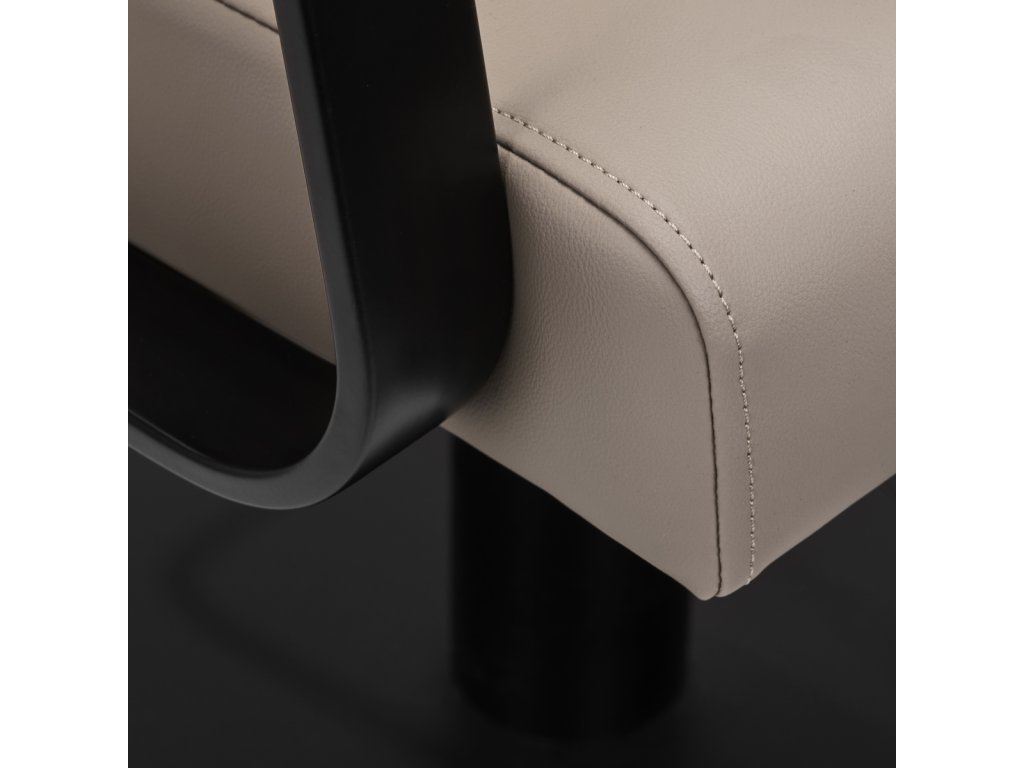 Mechanizmus úplného otáčania stoličky robí prácu kaderníkaefektívnejšie a pohodlnejšie. Pevná, plochá základňa štvorcového tvaruzaručuje stabilitu počas používania. Hladký povrch s matnou povrchovou úpravou dodáva prvku elegantný vzhľad a umožňuje ľahko sa udržiava v čistote. Pohodlné sedadlo s penovou výplňou zaručujevysoký komfort používania, a to aj počas mnohých hodín liečby. Geometrické kovové opierky rúk umožňujúsprávna poloha ramien klienta - to znamená, že nezakrýva hlavu do ramien a nehrbí sa - čouľahčuje presné ošetrenie, vrátane strihania vlasov. Štýlová opierka na nohy určená pre tento model poskytuje stabilnú oporu pre nohy používateľa.