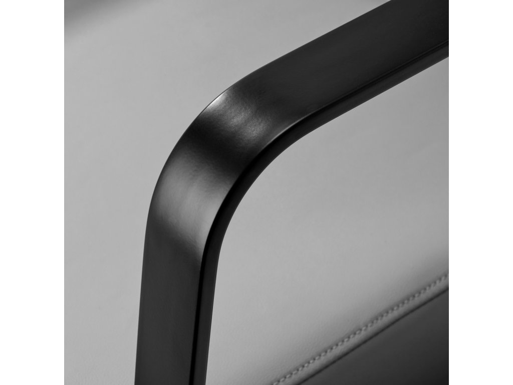 Profilovaná stoličkaposkytuje primeranú bedrovú oporu a tým aj vysoký komfort používania. Kovové podrúčky v odtieňoch čiernej farby s geometrickým tvarom umožňujúsprávna poloha ramien zákazníka. Výplň z odolnej peny odolnej voči deformácii a čalúnenie zo syntetickej kože príjemnej na dotyk zaručujú odolnosť nábytku, jednoduché čistenie a pohodlné používanie po dlhú dobu. Originálny, elegantný vzhľad umývačky vlasov dodáva interiéru jedinečný výraz. Súprava obsahujekompletné príslušenstvo v čiernych odtieňoch, vrátane batérie, sprchovej hlavice a špeciálnych hadíc naposkytnúť kompletnú sadu pracovných nástrojov.