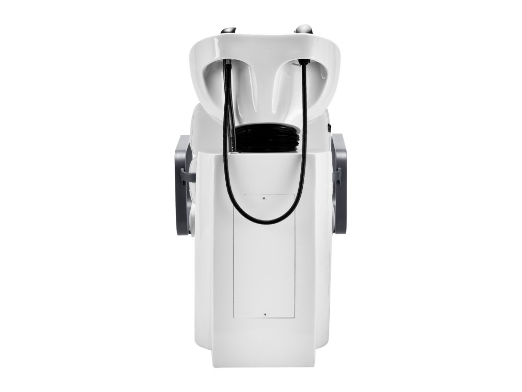 Praktická umývačka vlasov je vybavená zmiešavacou batériou, ktoráposkytuje ľahký prístup k teplej a studenej vode. To uľahčuje nastavenie teploty podľa individuálnych preferencií zákazníka. Vyhradené miesto na zavesenie slúchadla uľahčuje prácu apochrómovaná zátka so špeciálnym sitkom umožňuje regulovať prietok vody a udržiavať vysoké hygienické štandardy v salóne.Vodovodná prípojka je umiestnená vo vnútri základne, vďaka čomu sa potrubia dajú ľahko skryť. Významnou výhodou tohto modelu jeotvor medzi operadlom a sedadlom, ktorá uľahčuje udržiavanie čistoty v obývacej izbe tým, že umožňuje ľahko vymetať nečistoty z každého zákutia kresla. Umývacia jednotka bola navrhnutá tak, aby zabezpečila pohodlie počas rôznych procedúr,zabezpečenie správnej opory chrbta. Kombinácia funkčnosti a vybavenia umožňuje prácu v kaderníckom salóne ešte pohodlnejšie.
