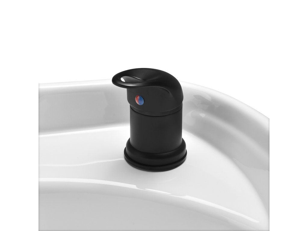 Primeraná hĺbka bielej keramickej misy umývadlazabraňuje nadmernému striekaniu vody alebo produktov používaných počas ošetrenia. To umožňujepre pohodlný a efektívny výkon širokej škály služieb. Uhol misky sa dá nastaviť, čo uľahčujeprispôsobiť sa individuálnym potrebám. Vďaka vysokej kvalite použitých materiálov je umývadlotrvanlivé, odolné voči zmene farby a poškriabaniu a veľmi ľahko sa čistia. Správne profilovaný golier a naklonené operadlo poskytujú podporu a pohodlie pri umývaní vlasov a vďakapohodlné čierne plastové prekrytie, zákazník nebude pociťovať nepríjemný chladný keramický povrch.