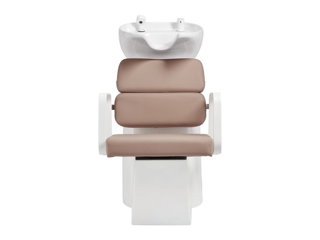 Praktická umývačka vlasov je vybavená zmiešavacou batériou, ktoráposkytuje ľahký prístup k teplej a studenej vode. To uľahčuje nastavenie teploty podľa individuálnych preferencií zákazníka. Vyhradené miesto na zavesenie slúchadla uľahčuje prácu apochrómovaná zátka so špeciálnym sitkom umožňuje regulovať prietok vody a udržiavať vysoké hygienické štandardy v salóne.Vodovodná prípojka je umiestnená vo vnútri základne, vďaka čomu sa potrubia dajú ľahko skryť. Významnou výhodou tohto modelu jeotvor medzi operadlom a sedadlom, ktorá uľahčuje udržiavanie čistoty v obývacej izbe tým, že umožňuje ľahko vymetať nečistoty z každého zákutia kresla. Umývacia jednotka bola navrhnutá tak, aby zabezpečila pohodlie počas rôznych procedúr,zabezpečenie správnej opory chrbta. Kombinácia funkčnosti a vybavenia umožňuje prácu v kaderníckom salóne ešte pohodlnejšie.