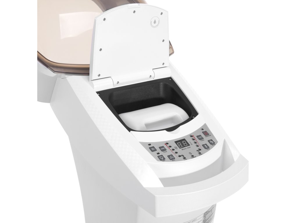 Elektronická regulácia parametrov uľahčuje prácu kaderníka. Zariadenie je vybavenéintuitívny ovládací panel s prehľadným digitálnym displejom, čo zaručuje jednoduchú obsluhu. Pracovný programmožno individuálne nastaviť podľa vašich potrieb alebo môžete použiť jednu z troch naprogramovaných možností. Môžete ľahko nastaviťintenzitu pary v piatich úrovniach, teplotu v rozmedzí 45 až 65 °C a čas v rozsahu 1-99 minút. Sauna je tiež vybavená funkciami ozonizácie a svetelnej terapie, ktoré možno kedykoľvek zapnúť.Tri naprogramované režimy boli pripravené tak, aby práca kaderníka bola čo najefektívnejšia. Ide o tieto programy: