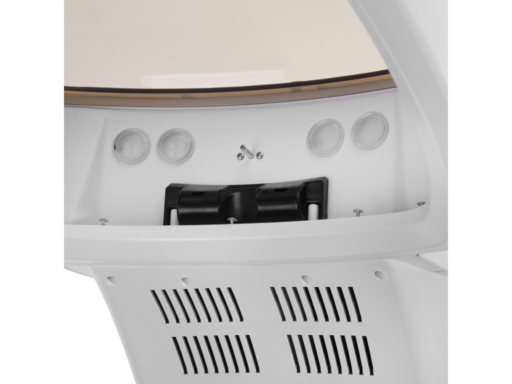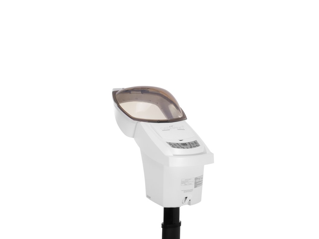 Vďaka bielemu plastovému puzdru je zariadenieodolné a ľahko sa udržiavajú v čistote. Otváracia kupola výrazne zlepšuje čistenie výrobku.Stojan s jednoduchým manuálnym nastavením v rozsahu 18 cm je vybavený základňou s praktickými kolieskami, ktorá vám umožní zariadenie kedykoľvek ľahko premiestniť.