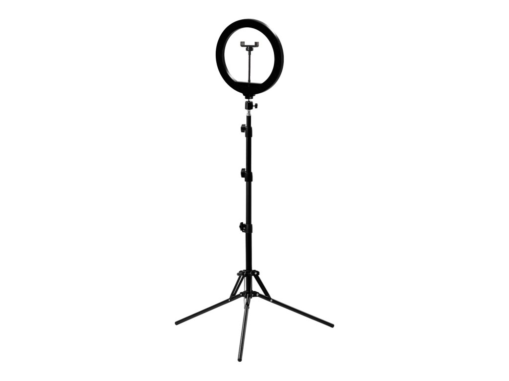 Súprava obsahuje: krúžkové svetlo, napájací kábel USB, nabíjačka, prvky statívu, návod, držiak na telefón.