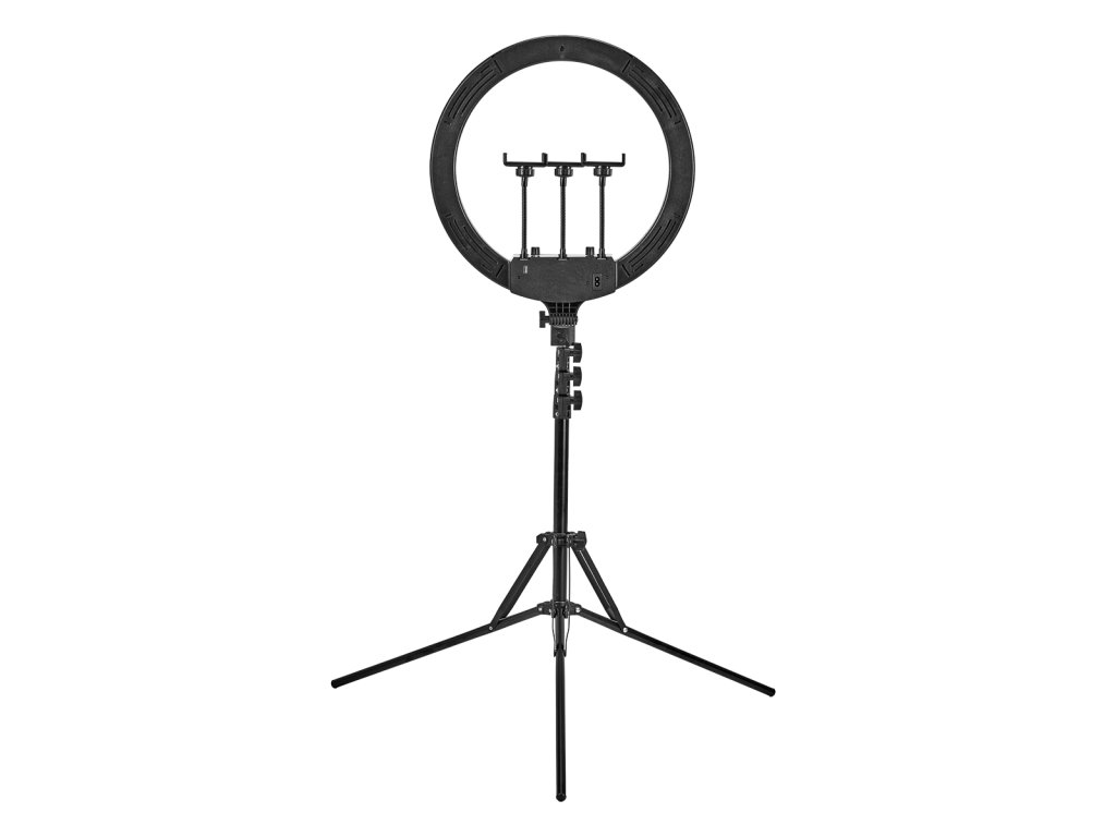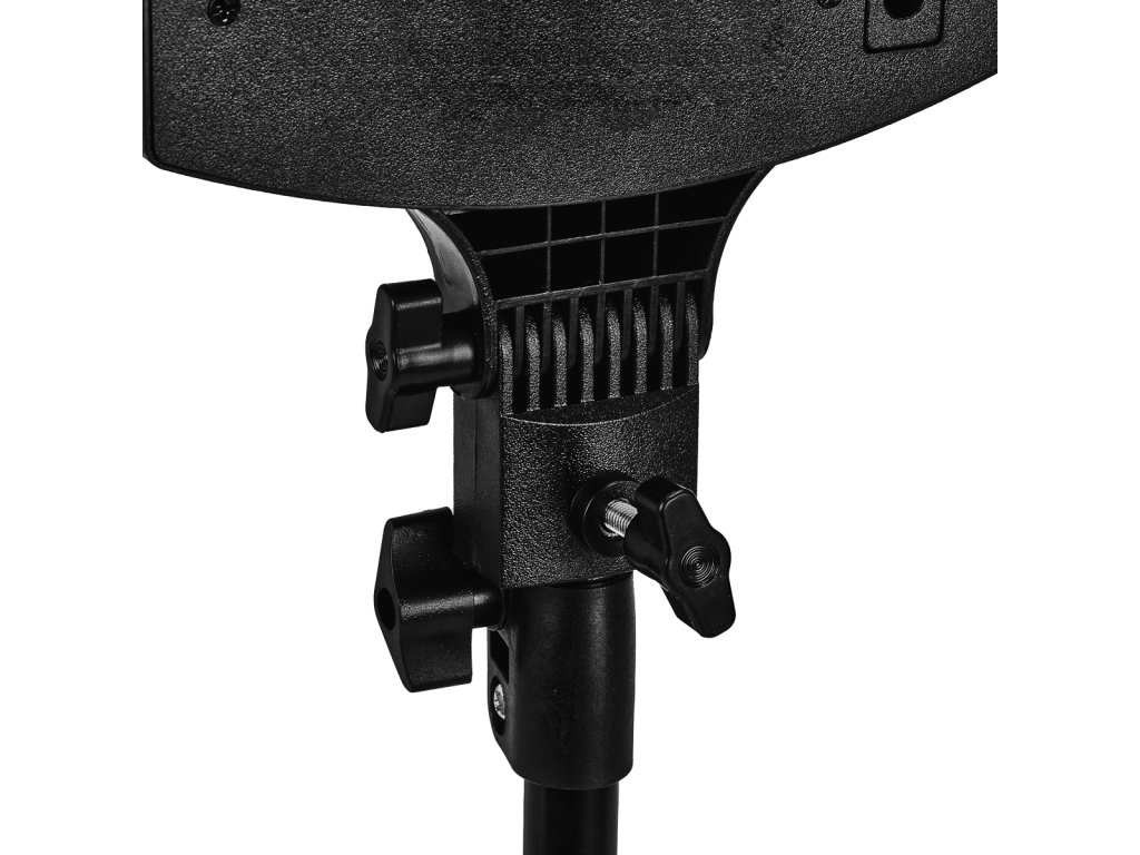 Veľký priemer krúžku lampy umožňuješiroký, mimoriadne rozptýlený a jemný svetelný prúd. Ľahká a odolná konštrukcia statívus protišmykovými nožičkamizabezpečuje výrazný komfort a stabilitu počas používania.Teleskopický rám umožňuje uzamknúť výšku v rozsahu 40-210 cm, čo uľahčuje nastavenie osvetlenia podľa vašich potrieb. Malá guľová hlava, ktorá je súčasťou súpravy, umožňuje jednoduchú inštaláciu lampy a voľné nastavenie jeho uhla.