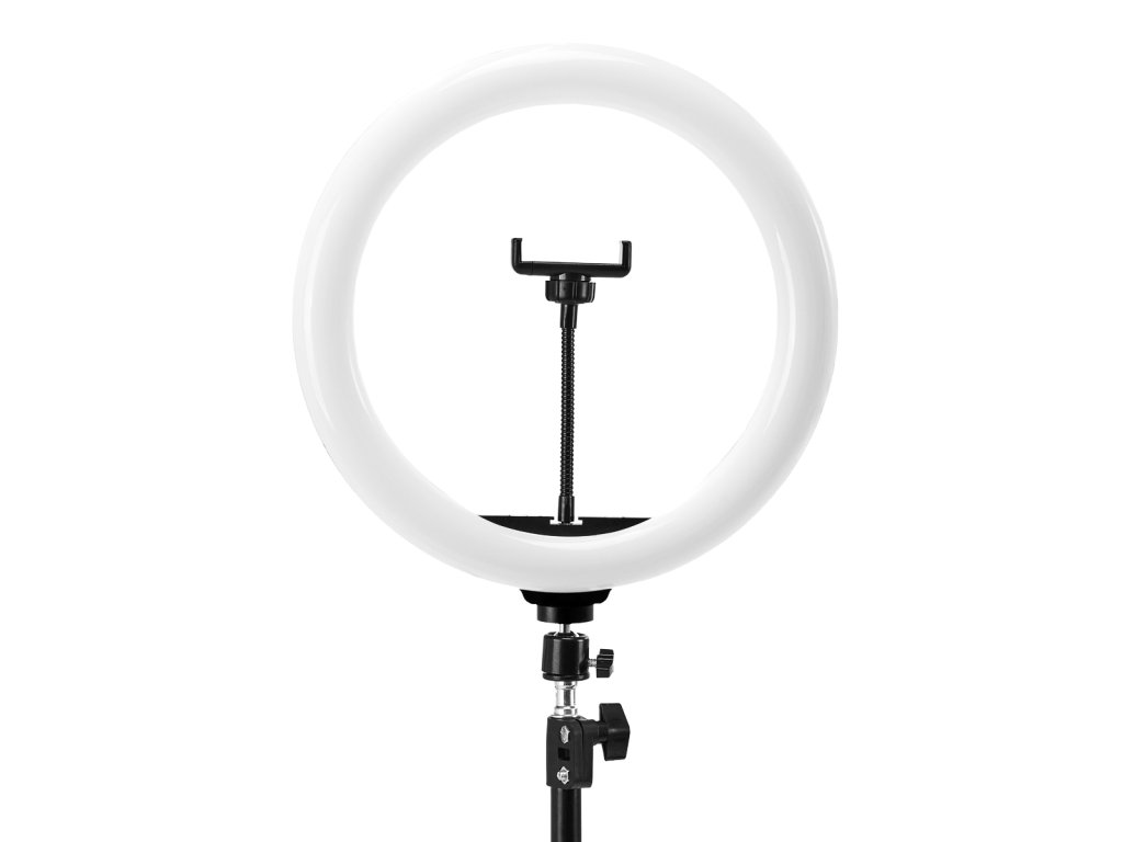 Diaľkové ovládanie na kábli umožňuje postupné nastavenie teploty svetla v širokom rozsahustudené - stredne teplé - teplé (od 3000 do 6000 K) a regulácia intenzity svetla v 12 úrovniach. Táto funkcia poskytuje dodatočnú flexibilitu pri používaní svietidla. Upevnenie na pevný statívzaručuje pohodlnú prácu v kozmetickom salóne, tetovacom štúdiu alebo doma. Okrem toho sa vo vnútri krúžku lampy nachádza adaptér so závitom, ktorý umožňuje inštaláciu flexibilného držiak telefónu, ktorá je súčasťou súpravy a vďaka možnosti predĺženia svorky na maximálne 15 cm je vhodná pre väčšinu smartfónov dostupných na trhu.