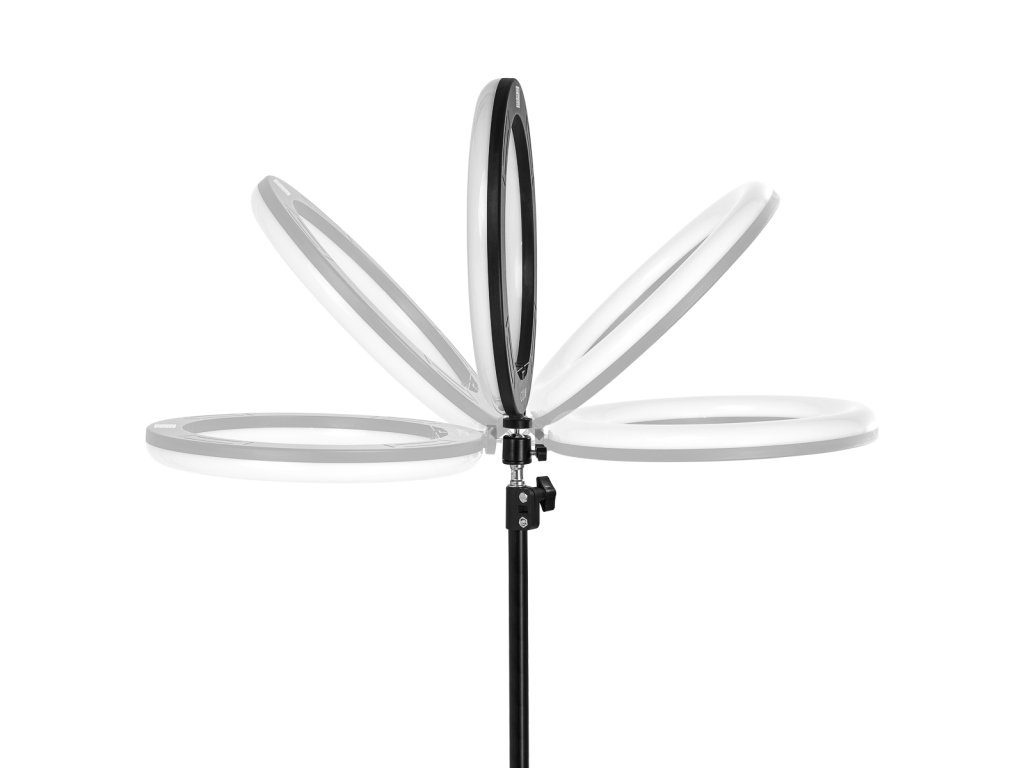 Kompaktný Žiarovka s vonkajším priemerom 33 centimetrov je praktické zariadenie, ktoré poskytnevynikajúce osvetlenie pracovného priestoru v kozmetickom salóne, kaderníckom salóne alebo tetovacom štúdiu a bude užitočná aj na fotografovanie, nahrávanie videí a materiálov pre sociálne médiá.Osvetlenie bez tieňovuľahčí vykonávanie rôznych ošetrení a nastaviteľná intenzita a farba svetla zabezpečí väčší komfort pri práci. Možnosť výberu farby osvetlenia ovplyvňuje rozmanitosť pripravovaných materiálov avytvára jedinečnú atmosféru do miestnosti.