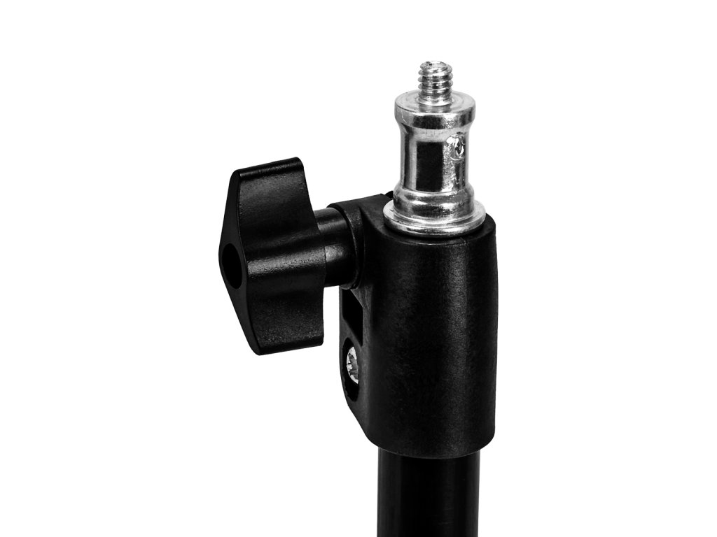 Ľahká a odolná konštrukcia statívus protišmykovými nožičkami zabezpečuje výrazný komfort a stabilitu počas používania.Teleskopický rámumožňuje uzamknúť výšku v rozsahu 40-160 cm, čo uľahčuje nastavenie osvetlenia podľa vašich potrieb. Malá guľová hlava, ktorá je súčasťou súpravy, umožňuje jednoduchú inštaláciu lampy avoľné nastavenie jeho uhla.