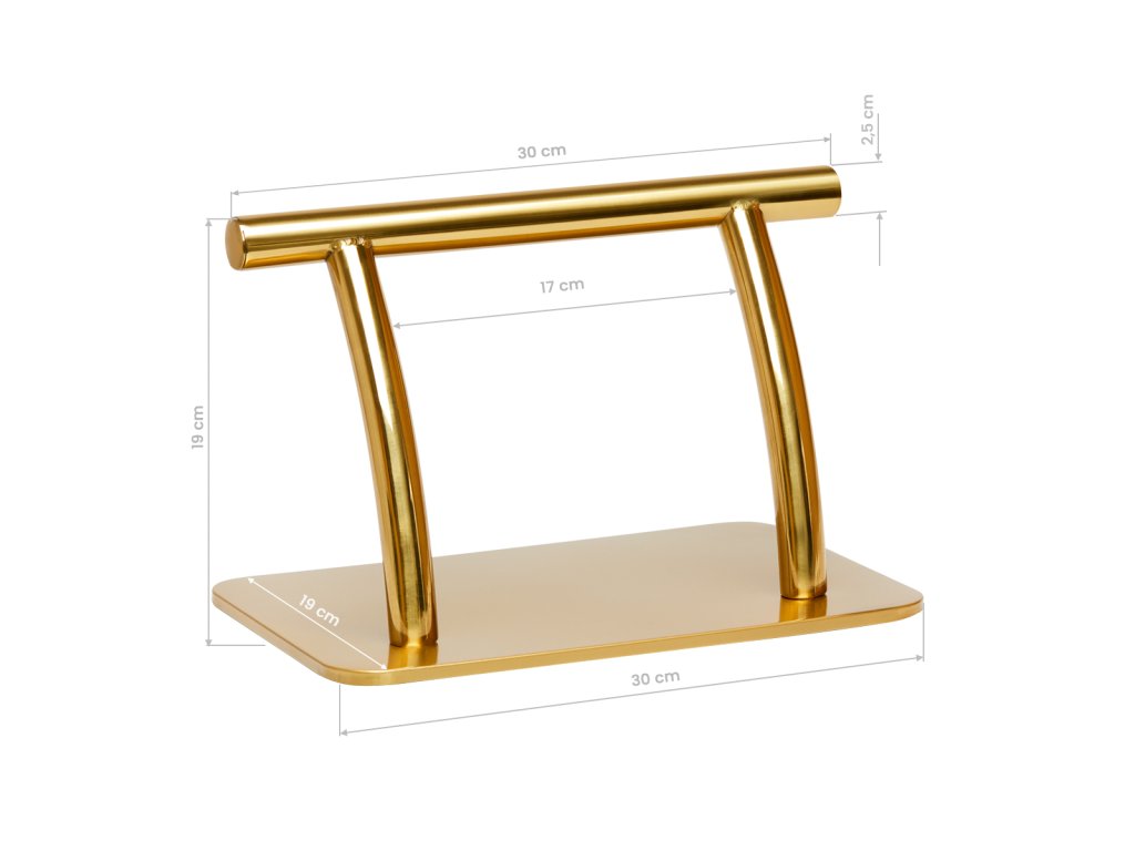 A hairdressing footstool L005S is a very important element in every hairdressing salon. It gives the client the opportunity to support his legs during the treatment, so that the customer takes a maximally comfortable position. The footrest placed on the floor has a special anti-slip base. Made of high-quality materials in shades of gold, the product is stable and ensures safety for the client and ergonomics for the hair stylist. The minimalist look makes the footstool fit very well with the decor of any interior.