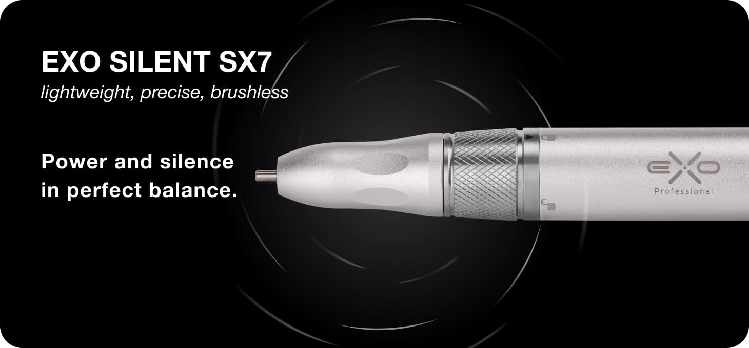 Bezkartáčová hlava EXO SILENT SX7 kombinuje vysoký výkon s mimoriadne tichou prevádzkou a minimálnymi vibráciami. Použitá bezkartáčová technológiazvyšuje životnosť vŕtačky a zaručuje plynulú prevádzku aj pri dlhodobom zaťažení.