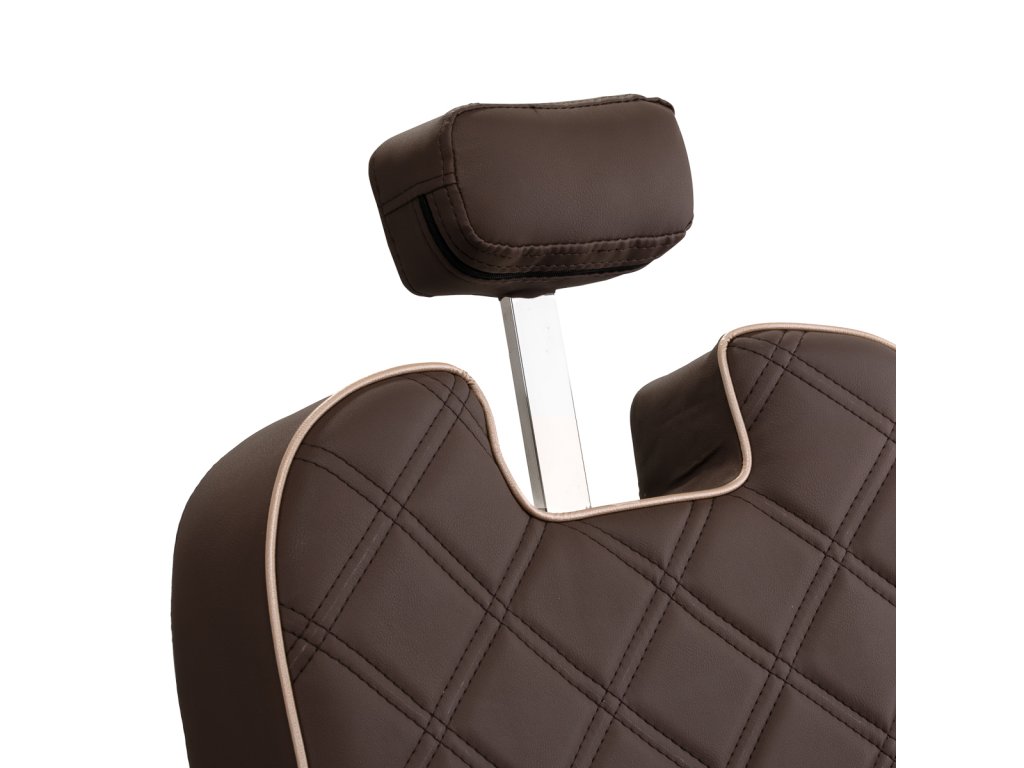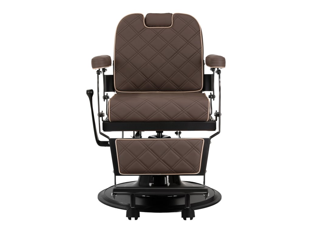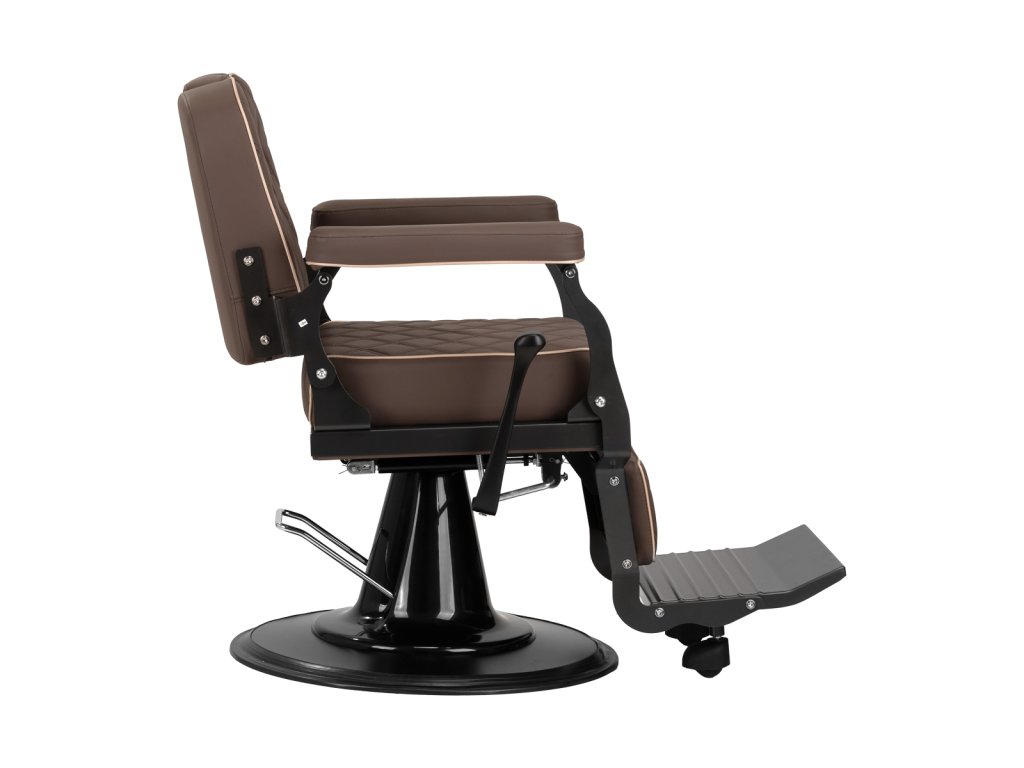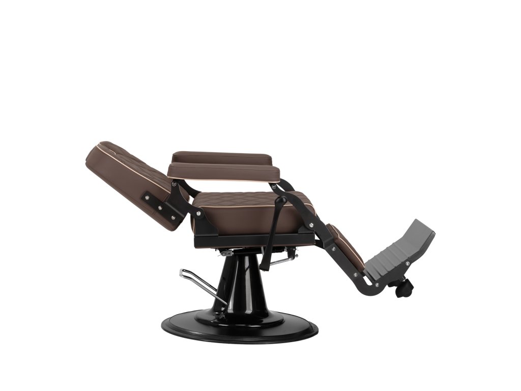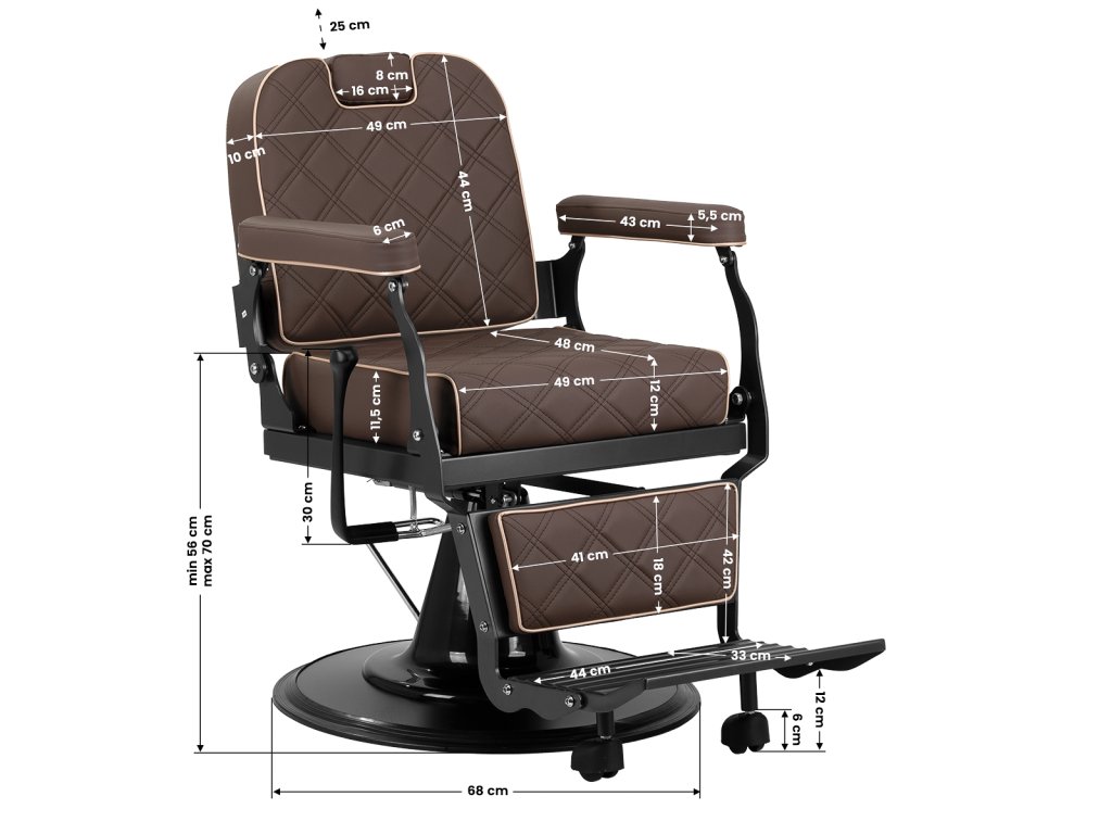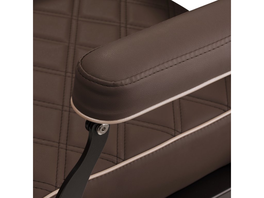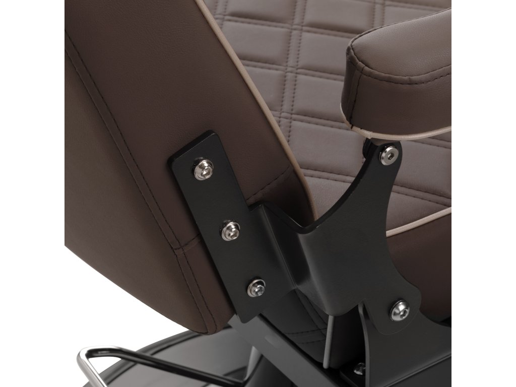 Pevná konštrukciazaručuje stabilitu a vysoký komfort používania. Sedadlo je vyplnené penou odolnou proti deformácii a čalúnenie z mäkkej matnej syntetickej kože poskytuje nábytku odolnosť a pohodlie.Materiály odolné voči vlhkosti sú nielen odolné, ale aj ľahko sa čistia. Hnedý odtieň čalúnenia dodáva kreslujedinečný charaktera jeho elegantný štýl sa dokonale hodí do každého holičstva.