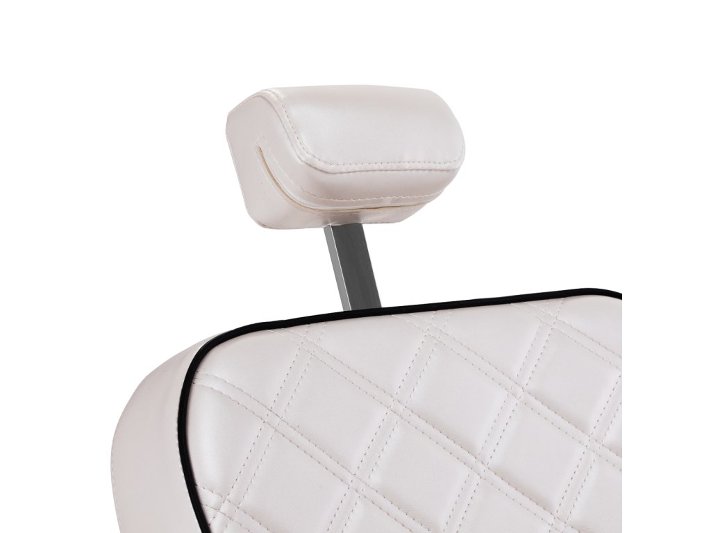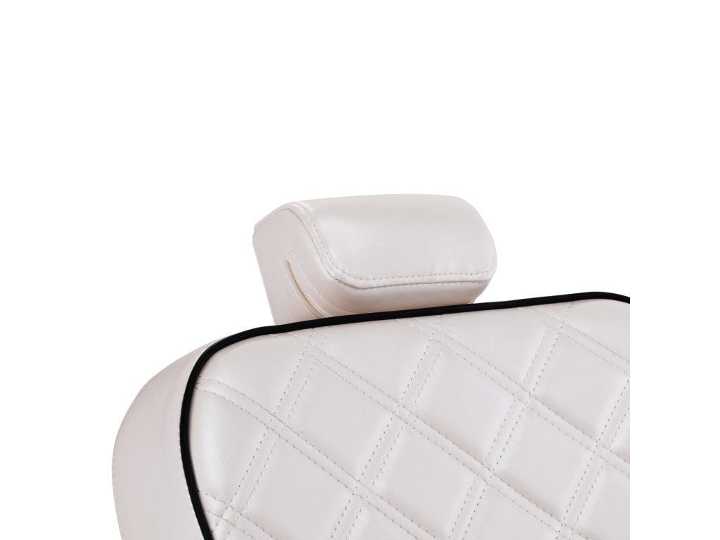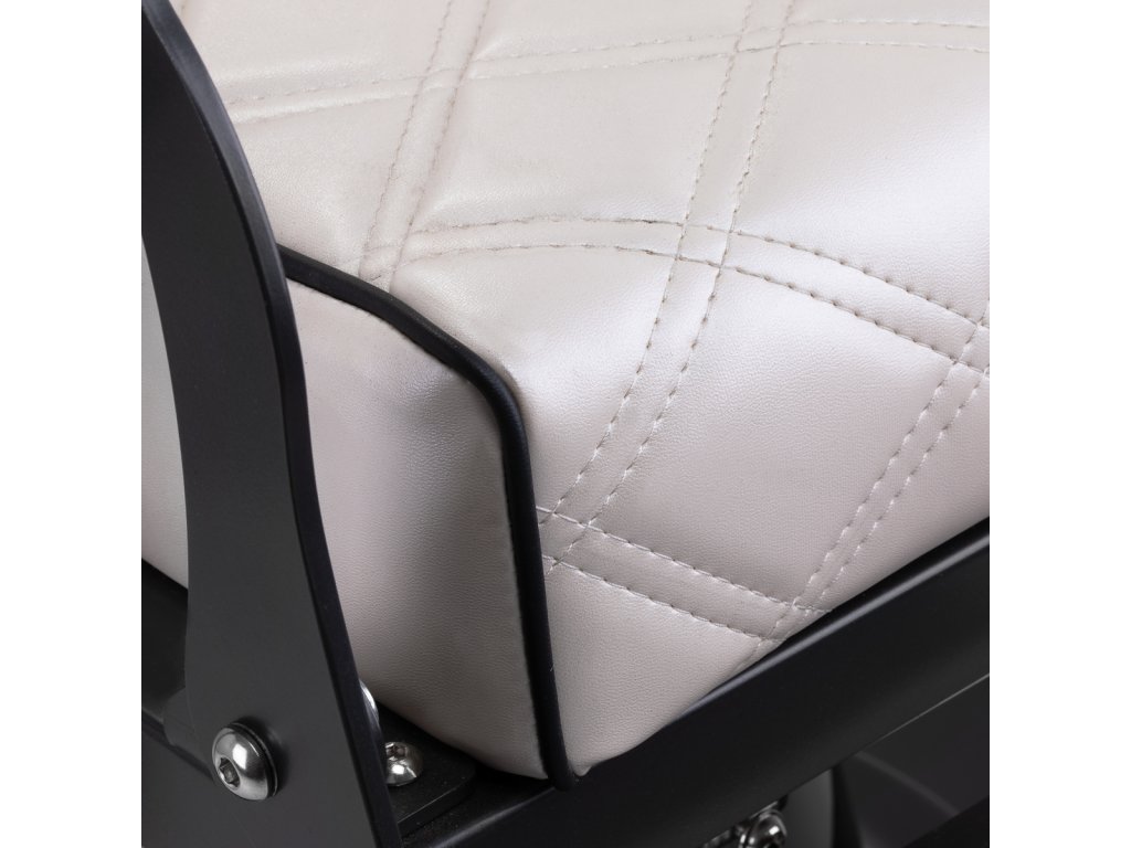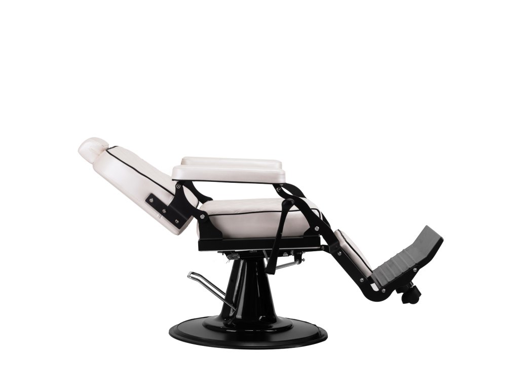 Pevný základzabezpečuje stabilitu a vysoký komfort používania. Stránkavýplň sedadla z peny odolnej voči deformácii a čalúnenie z na dotyk príjemnej syntetickej kože s perleťovým povrchomodolnosť a pohodlné používanie na dlhý čas. Tieto materiály súodolné voči vlhkosti, trvanlivé a ľahko sa čistia. Krémový odtieň čalúnenia dodáva kreslu jedinečný charakter a jehoelegantný štýl dokonale sa hodí k výzdobe holičstva.