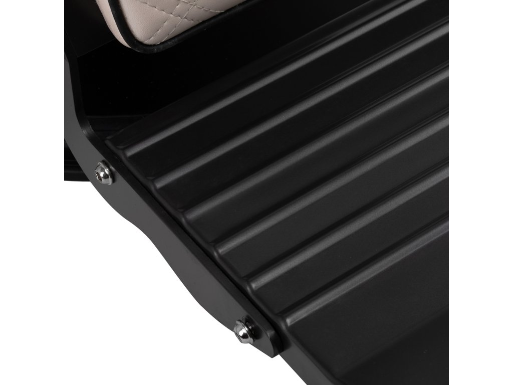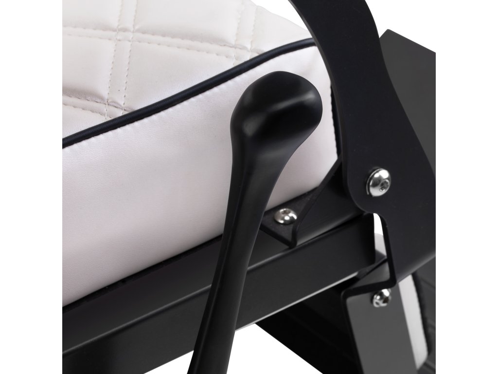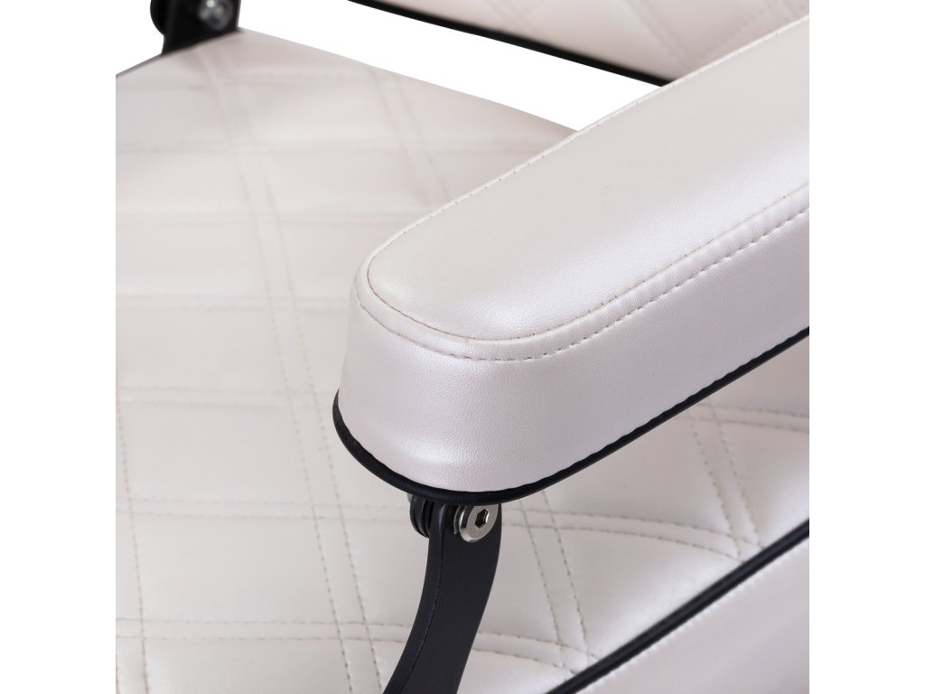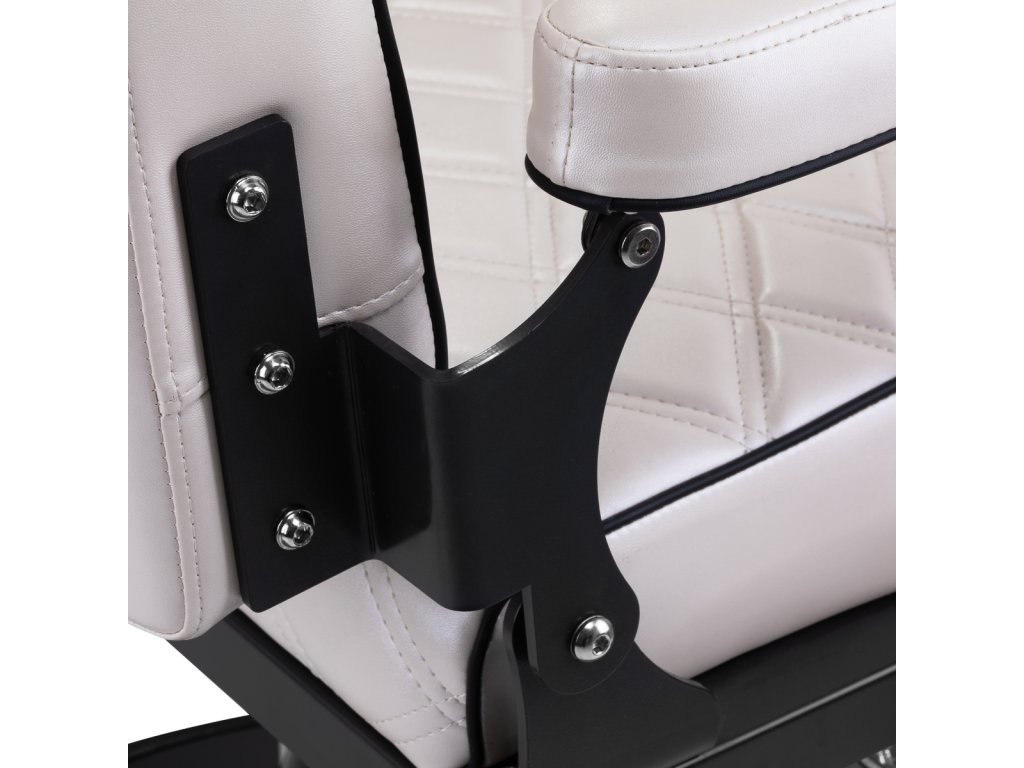 Pevný základzabezpečuje stabilitu a vysoký komfort používania. Stránkavýplň sedadla z peny odolnej voči deformácii a čalúnenie z na dotyk príjemnej syntetickej kože s perleťovým povrchomodolnosť a pohodlné používanie na dlhý čas. Tieto materiály súodolné voči vlhkosti, trvanlivé a ľahko sa čistia. Krémový odtieň čalúnenia dodáva kreslu jedinečný charakter a jehoelegantný štýl dokonale sa hodí k výzdobe holičstva.