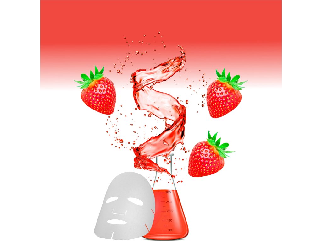 Pleťová maska s jahodovým extraktom, vitamínmi a antioxidantmi pre pružnejšiu a revitalizovanú pleť.