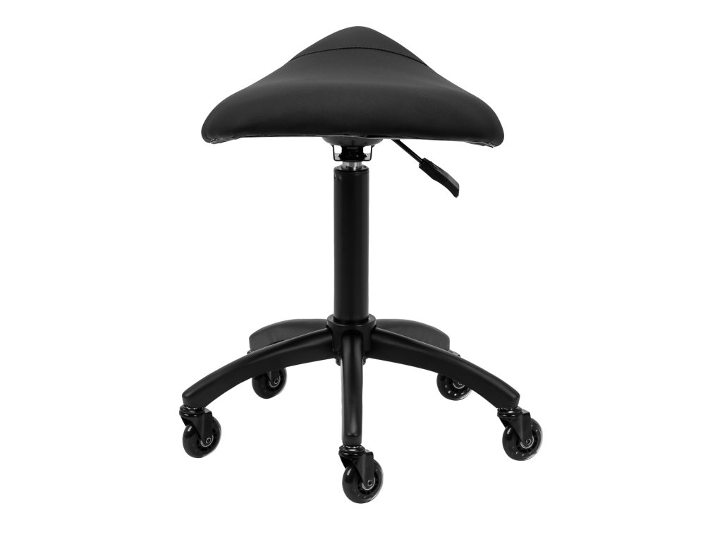 Nastavenie výšky sedadla v rozsahu 56-77 cm umožňuje špecialistovi prispôsobiť svoju polohu počas vykonávania služieb.Sedadlo v tvare sedla, vyplnené penou odolnou proti deformácii, zaručuje pohodlie a ergonómiu. Mechanizmus úplného otáčaniazefektívňuje a zjednodušuje prácu. Mobilitu zabezpečujeRýchlostné kolesáso železným jadrom a polyuretánovým (PU) povlakom, ktoré kombinujú hladký pohyb s výnimočnou odolnosťou proti opotrebovaniu. PoužitieLožiská ABEC-7 uľahčuje pohyb stoličky a výrazne uľahčuje manévrovanie.