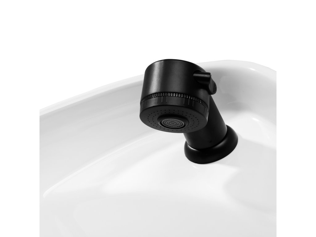 Bielakeramická umývadlová misa s primeranou hĺbkou zabraňuje nadmernému striekaniu vody a produktov používaných počas ošetrenia. To umožňujepre pohodlné a efektívne vykonávanie širokej škály služieb. Uhol misky sa dá nastaviť, takže sa ľahko prispôsobí individuálnym potrebám. Vďaka použitému vysokokvalitnému materiálu je umývadlotrvanlivé, odolné voči zmene farby a poškriabaniua veľmi ľahko sa čistí.Správne profilovaný golier a naklonené operadloposkytujú podporu a pohodlie pri umývaní vlasov.