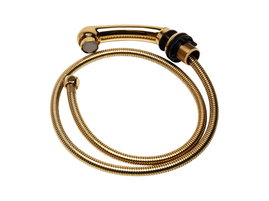Elegantnýsprchová hlavica v odtieňoch zlatana použitie v kaderníckych umývacích jednotkách. Súprava obsahuje sprchovú hlavicu so štandardnou montážnou zásuvkou na misu a flexibilnú hadicu. To zaručujerýchla a bezproblémová inštalácia. Výrobok je vhodný pre väčšinu umývacích jednotiek a batérií dostupných na trhu. Výrobok je vyrobený z vysokokvalitných materiálov, čo zaručuje dlhodobútrvanlivosť a spoľahlivosť. Budete si tak môcť užívať jeho funkčnosť po mnoho rokov.