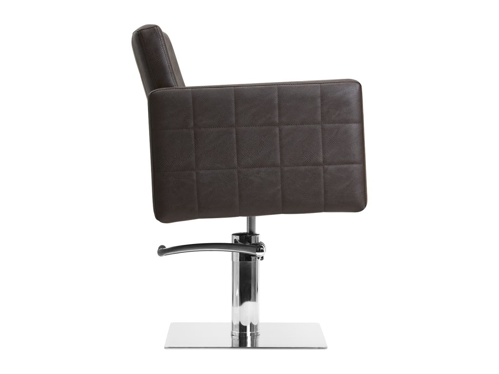 Pevná, plochá, štvorcová základňazabezpečuje stabilitu počas používania. Hladký povrch so zrkadlovou úpravou dodáva prvku elegantný vzhľad a umožňujeľahko sa udržiava v čistote. Pohodlné sedadlo vyplnené odolnou penou zaručujevysoký komfort používania, a to aj počas mnohých hodín liečby. Čalúnenie zo syntetickej kožes ozdobným prešívanímopierky rúk sú vizuálne zaujímavým prvkom, a čo je dôležitejšieumožniť správnu polohu ramien zákazníka. To znamená, že nezakopáva hlavu do ramien ani sa nehrbí - to je jasnéuľahčuje vykonávanie presných postupov, vrátane strihania vlasov. Vybavenie kresla plnohodnotným rotačným mechanizmom zefektívňuje a spríjemňuje prácu kaderníka.