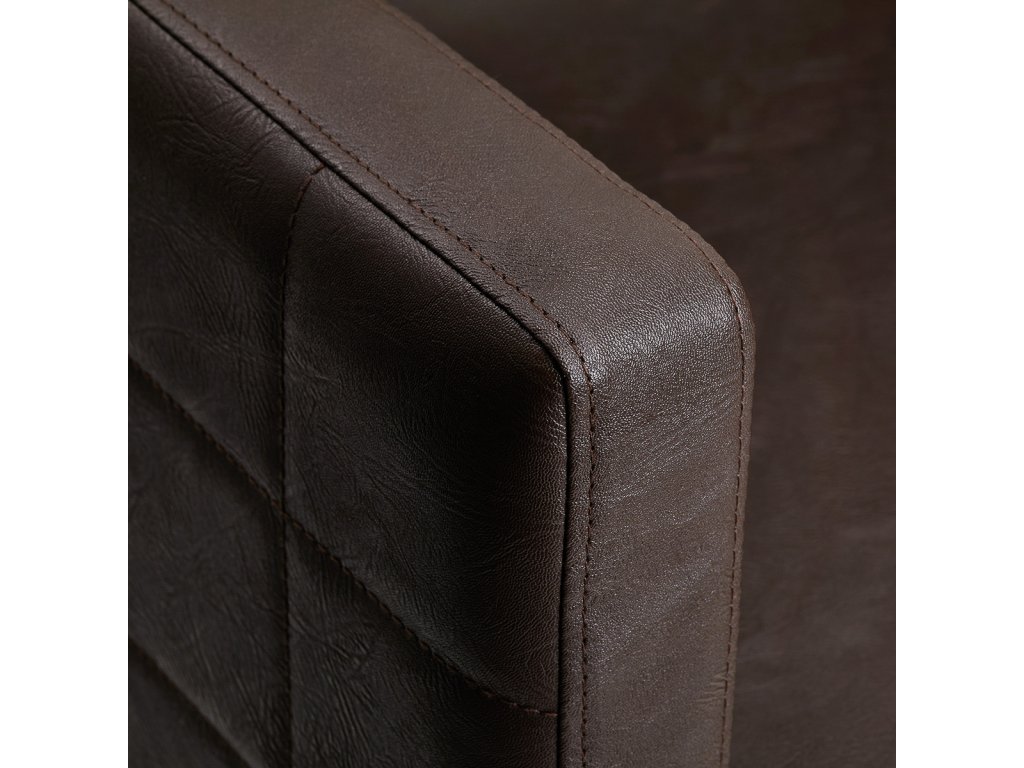 Pohodlné kreslo je vyplnenétrvanlivá pena odolná voči deformácii, čo zaručuje dlhodobé používanie, vysoký komfort a pohodlie aj počas mnohých hodín ošetrovania. Čalúnenie je vyrobené zsyntetická koža príjemná na dotyka použitie takéhoto materiálu spôsobuje, že zariadenieodolné voči vlhkosti, trvanlivé a veľmi ľahko sa čistia. Obal v odtieňoch hnedej spolu s vizuálne zaujímavými prvkami mu dodávajújedinečný charakter. Zariadenie sa vyznačuje elegantným dizajnom, vďaka ktorému stolička vyzerá skvele v mnohých interiéroch kaderníckych salónov.