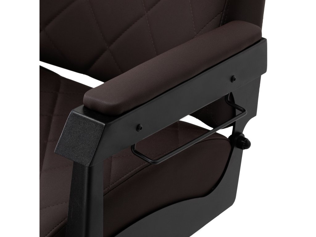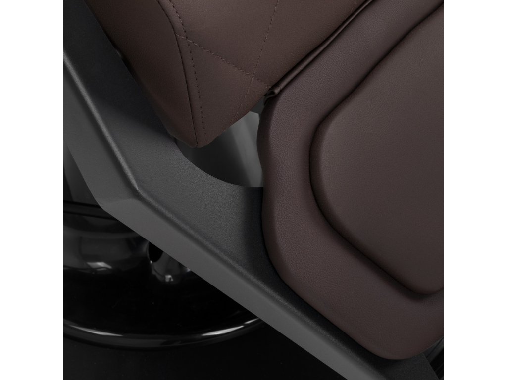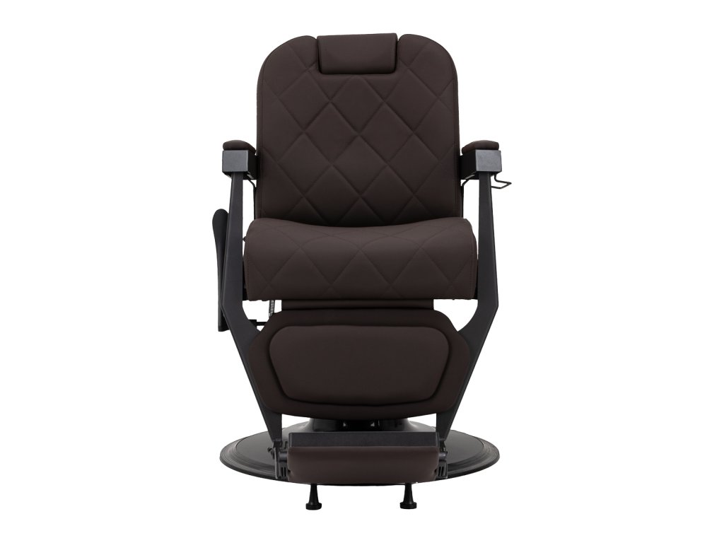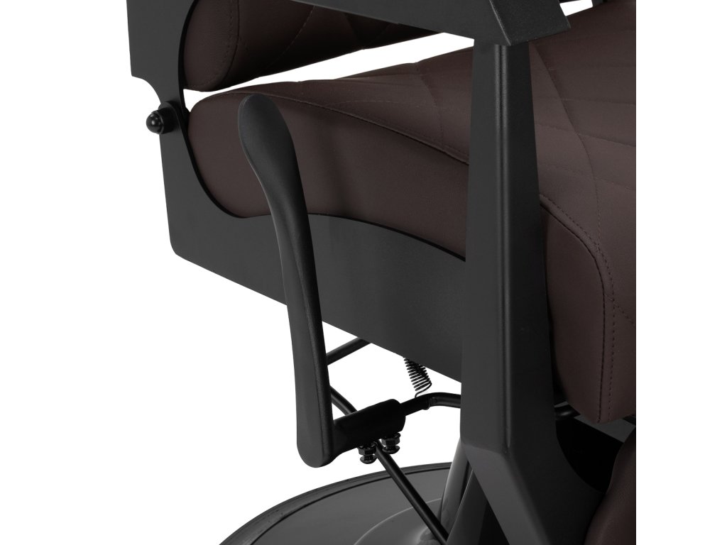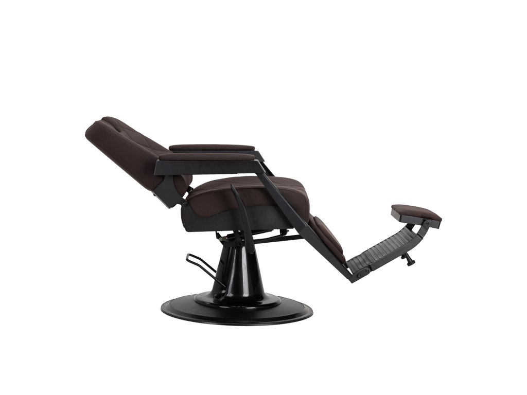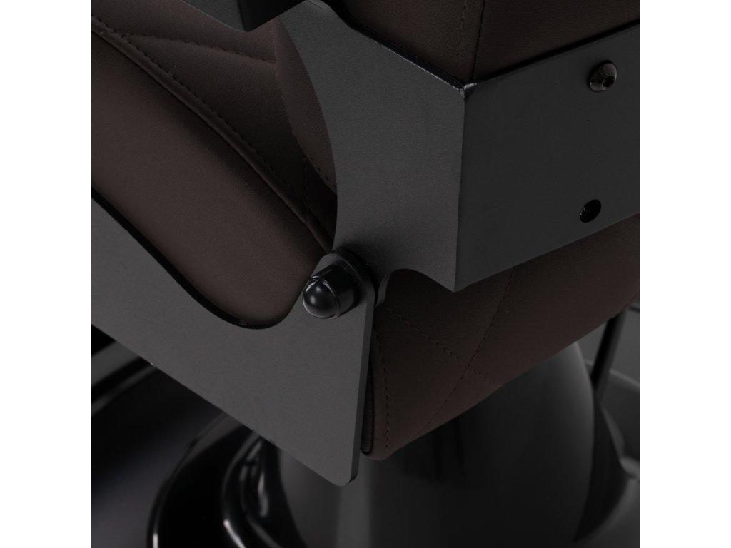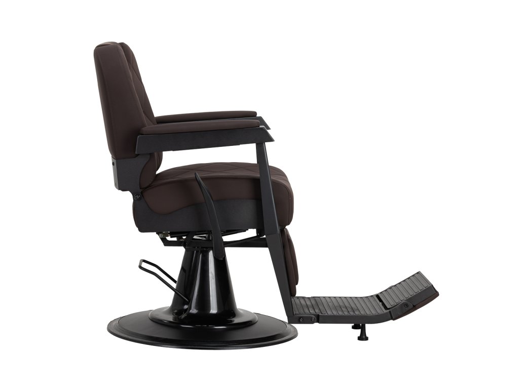 Stabilná konštrukcia zaručuje bezpečnosť a dlhodobú životnosť. Sedadlo vyplnené penou odolnou proti deformácii a čalúnenie z mäkkej syntetickej kože zabezpečujúodolnosť a pohodlie. Materiály odolné voči vlhkosti sú nielen odolné, ale aj ľahko sa čistia. Hnedé čalúnenie v kombinácii s čiernym rámom dodáva kreslumoderný a profesionálny vzhľad, zatiaľ čo jeho minimalistický štýl mu umožňuje zapadnúť do interiéru každého holičstva.