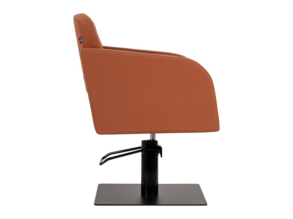 Kadernícke kreslo Gabbiano Eldakombinuje minimalistický dizajn s funkčnosťoua každodenné pohodlie. Zjednodušené línie mu dodávajúľahký a moderný charakter, zatiaľ čo stabilný štvorcový podstavec v matnej čiernej farbe ešte viac zdôrazňuje svoj štýl. Mäkká penová výplň v kombinácii s na dotyk príjemnou syntetickou kožou v odtieňoch hnedej zaručuje pohodlie aj počas dlhej liečby. Starostlivo vybrané materiály zabezpečujútrvanlivosť, odolnosť voči vlhkosti a jednoduché čistenie. Kreslo sa dokonale hodí do moderných aj klasických interiérov,zdôraznenie profesionálneho charakteru salónu.