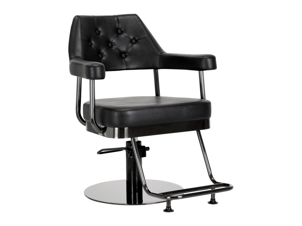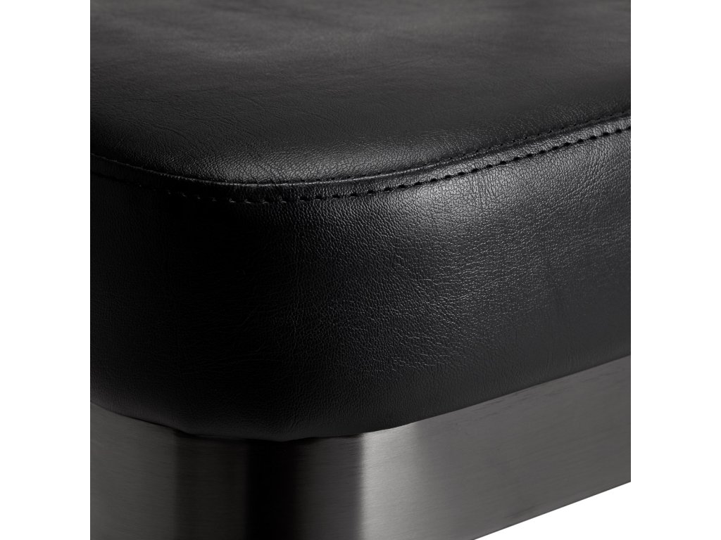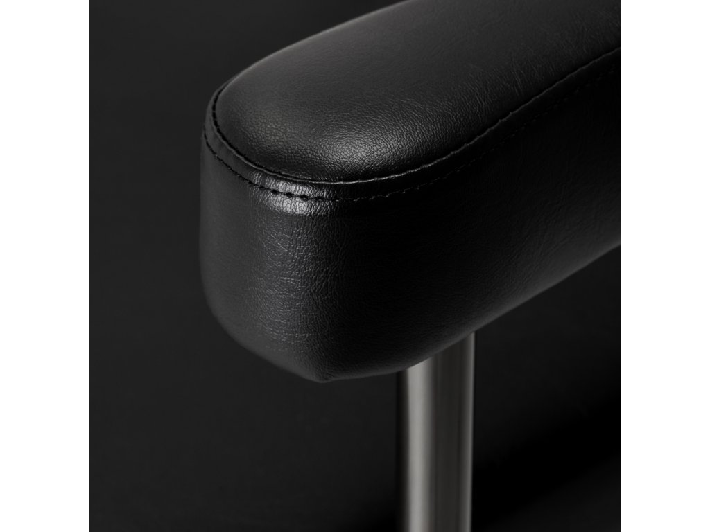 Stolička je vyplnená penou, ktorá jeodolný a nedeformuje sa, čo zaručuje pohodlné používanie počas dlhého obdobia. Čalúnenie je vyrobené zpríjemný na dotyk imitácia kože so špecifickou štruktúrou. Vďaka použitiu takéhoto materiálu je zariadenie odolné vočivlhkosť, odolnosť a ľahké čistenie. Poťah v odtieňoch čiernej a dekoratívne prvky v čiernych odtieňoch mu dodávajú výraznadčasová elegancia. Vyznačuje sa vkusnou povrchovou úpravou, ktorá mu dodávaexkluzívny charakter a vďaka tomu vyzerá skvele v mnohých profesionálnych salónoch.