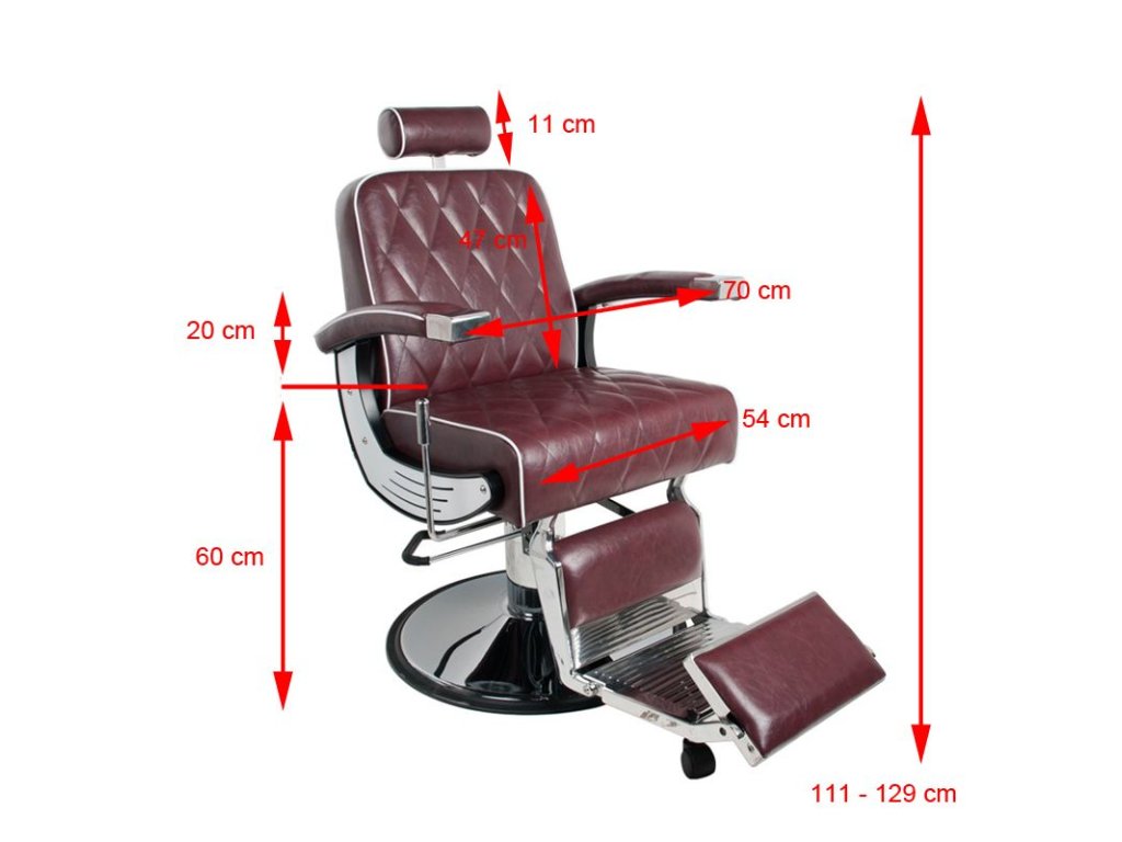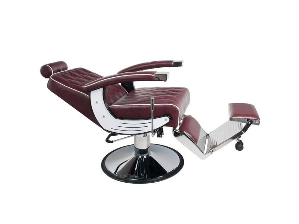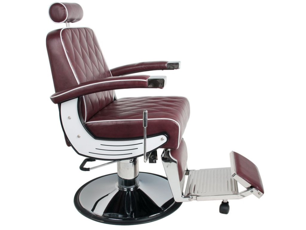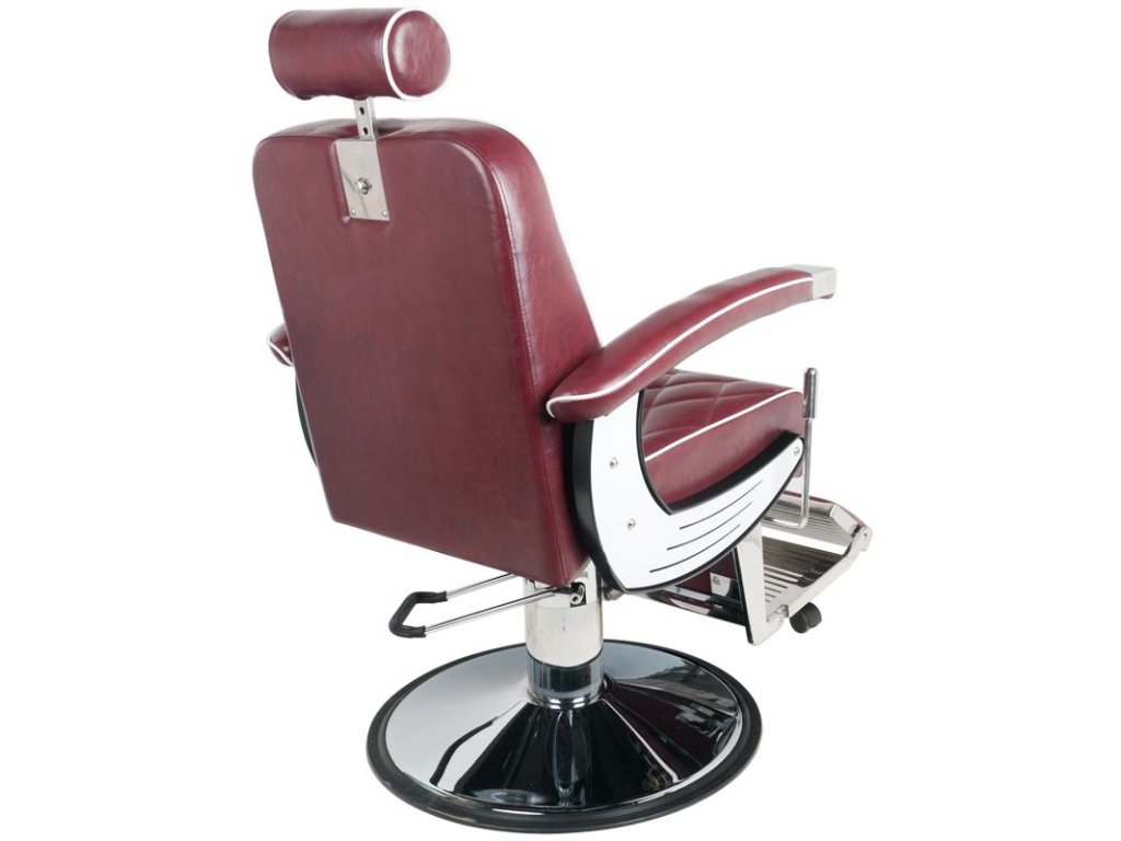 Pevná okrúhla základňa zabezpečuje vynikajúcu stabilitu stoličky, čo zaručuje pohodlnú a bezpečnú prácu. Vďaka sedadlu vyplnenému penou odolnou proti deformácii a čalúneniu z kvalitnej syntetickej kože je nábytok nielen pohodlný, ale ajtrvanlivé a odolné voči vlhkosti. Ľahko čistiteľný povrchuľahčuje udržiavanie hygieny v salóne. Výrazná bordová farbadodáva stoličke jedinečný charakter, a detaily inšpirované dizajnom motocyklov zdôrazňujú mužský štýl, ktorý dokonale ladí s usporiadaním holičstva.