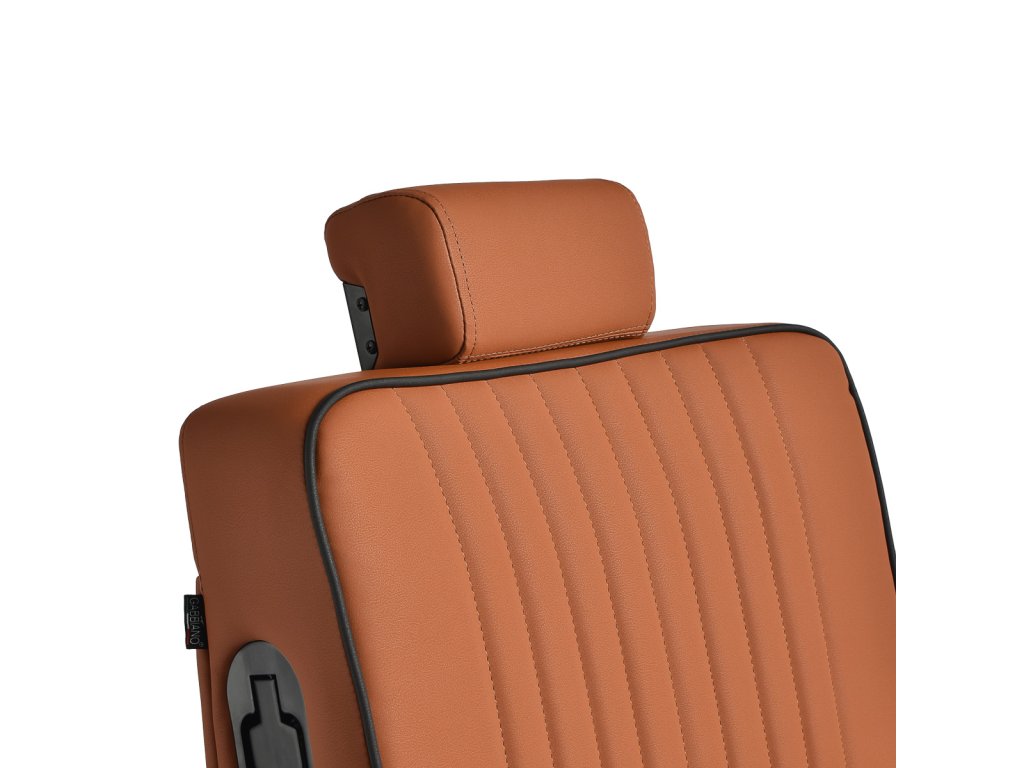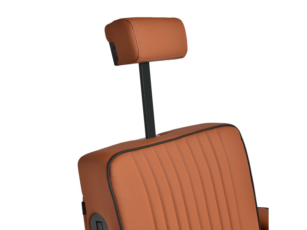 Sedadlo vyplnené mäkkou penou, poskytuje pohodlie aj počas dlhých procedúr, zatiaľ čo ergonomicky profilované operadlo podopiera chrbát.Mechanizmus úplného otáčaniazvyšuje voľnosť pohybu a umožňuje ľahký prístup zo všetkých strán, čím uľahčuje prácu kaderníka. Čalúnené podrúčky, nastavené v optimálnej výške,podpora prirodzenej polohy ramena, čím sa znižuje napätie v ramenách a krku. Ďalším komfortom jepraktický držiak na uterákypod ľavou lakťovou opierkou, čo uľahčuje organizáciu práce.