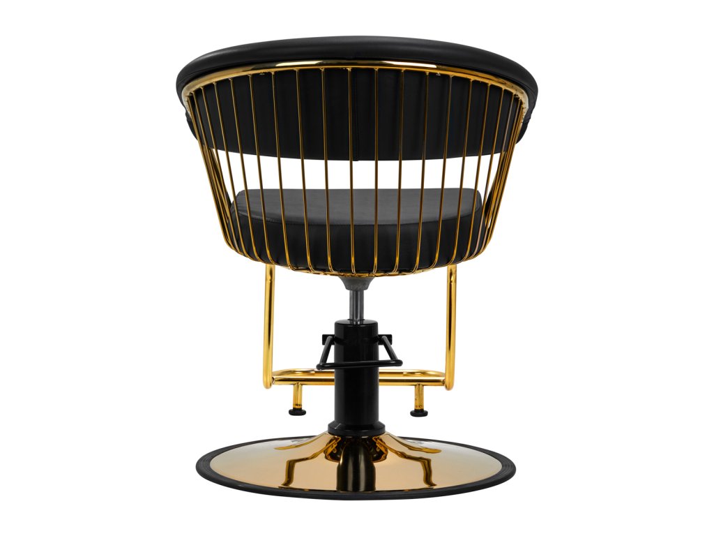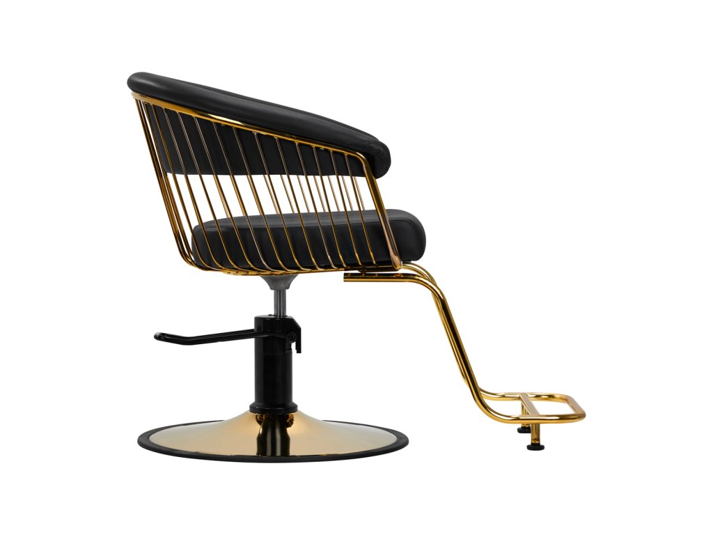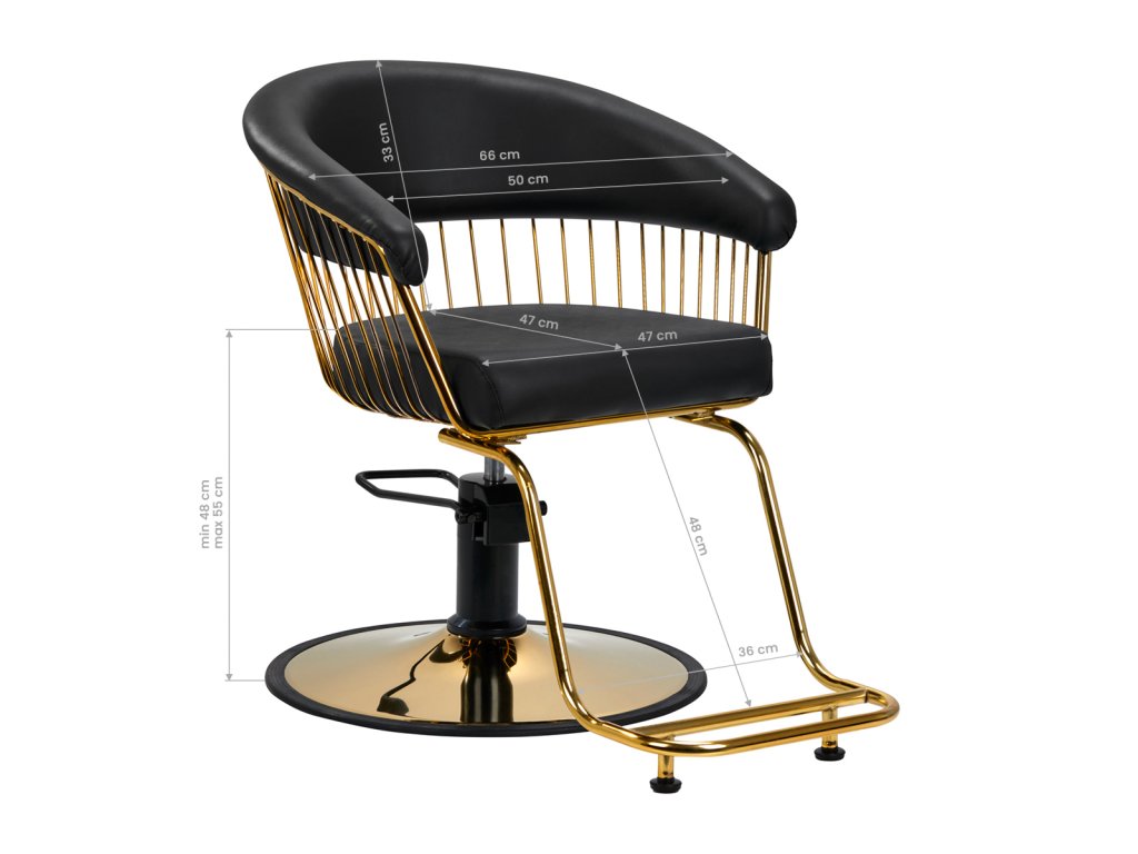 Odolný hydraulický výťah umožňuje nastaviť výšku sedadlado 48-55 cm, aj keď zákazník sedí na stoličke. To zaručujeergonomickejšia práca, vďaka možnosti voľne nastaviť úroveň kresla podľa výšky klienta aj kaderníka a možnosti úplného otáčania.Dokonale profilované operadlo pokryté syntetickou kožou vám umožní zaujať pohodlnú polohu. To poskytujeprimeraná opora chrbta, čo je dôležité najmä pri ošetreniach trvajúcich mnoho hodín. Vizuálne zaujímavým prvkom je tu kov, leštený,prepracovaný detail v zlatých odtieňoch spájajúce operadlo so sedadlom. Vytvorené priestoryuľahčiť udržiavanie čistoty salónu, čo vám umožní ľahko vyčistiť vlasy z každého zákutia stoličky. Ušetríte tak čas pri príprave pracoviska medzi jednotlivými klientmi.