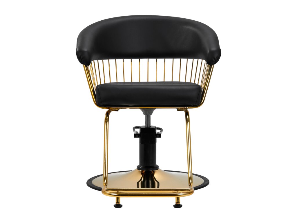 Pohodlná stolička je vyplnená odolnou penou, ktorá je odolná voči deformáciizaručuje dlhodobé používanie, vysoký komfort a pohodlie aj počas dlhodobých ošetrení. Čalúnenie je vyrobené zsyntetická koža príjemná na dotyk. Použitím takéhoto materiálu sa zariadenieodolné voči vlhkosti, trvanlivé a ľahko sa čistia. Obal v odtieňoch čiernej a dekoratívne prvky v zlatej farbe mu dodávajúvýraz nadčasovej elegancie. Všetky kovové povrchy sú leštené. Kadernícke kreslo Lille-M jevyznačujú sa vkusnou povrchovou úpravou, ktorá mu dodáva exkluzívny charakter a vďaka ktorej sa skvele hodí do mnohých profesionálnych salónov.