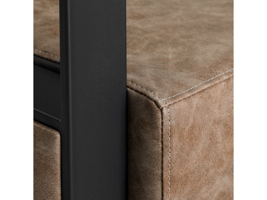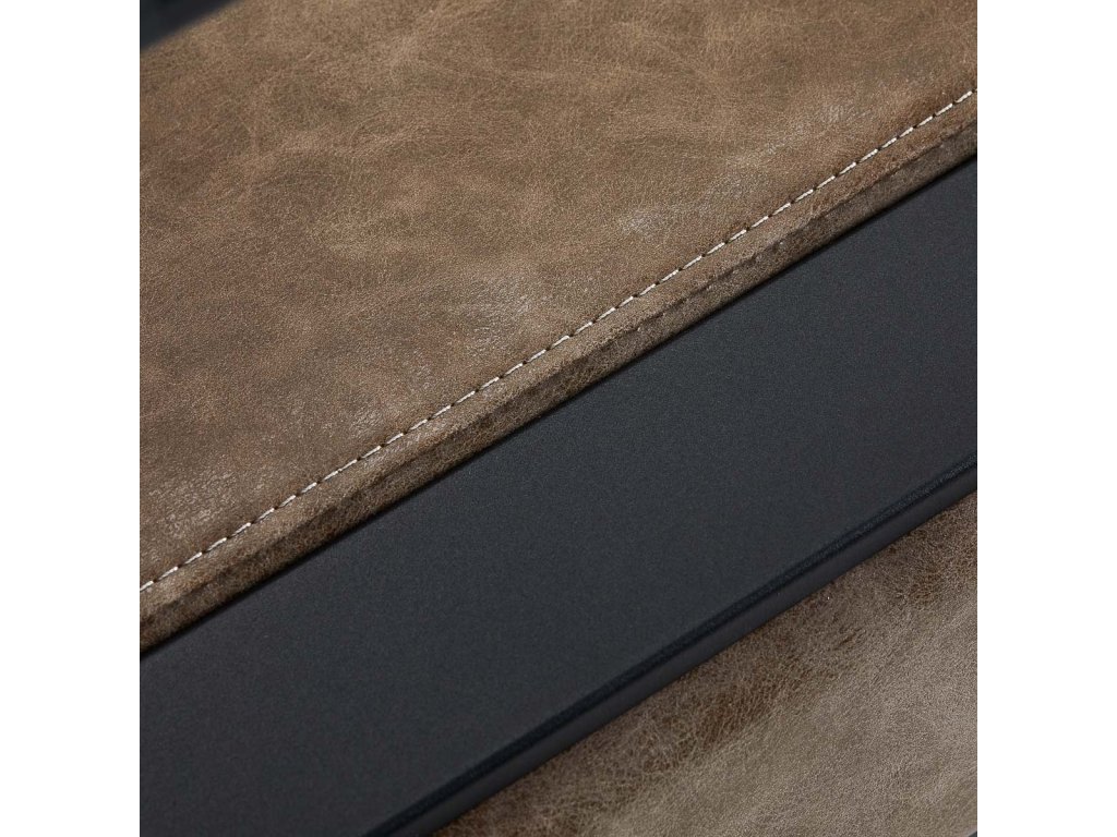 Plnenie pomocoutrvanlivá pena odolná voči deformáciám a čalúnenie zsyntetická koža príjemná na dotyk so špecifickou štruktúrou zaručujú odolnosť nábytku a jeho pohodlné používanie po dlhú dobu. Vďaka nim je zariadenieodolné voči vlhkosti, trvanlivé a ľahko sa čistia. Obal v odtieňoch hnedej spolu so zaujímavými vizuálnymi prvkami v odtieňoch čiernej mu dodávajú jedinečný charakter. Zariadenie sa vyznačujemodernistický dizajn, vďaka čomu stolička vyzerá skvele v mnohých salónoch zariadených vmoderný štýl.