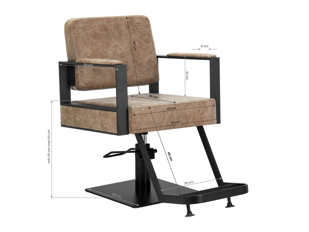 Nastavenie výšky je možné vďaka použitiuodolný hydraulický výťah, ktorý umožňuje nastaviť úroveň sedadlado 50-64 cm - aj keď klient sedí na stoličke. To zaručujeergonomickejšia práca, čím sa zabezpečí, žeúroveň sedadla sa dá nastaviť na výšku klienta aj kaderníka. Operadlo je čalúnené syntetickou kožou a umožňuje zaujať pohodlnú polohu, čím poskytujevynikajúca podpora chrbta, čo je dôležité najmä v prípade dlhých hodín liečby. Veľkou výhodou tohto modelu jeotvor medzi operadlom a sedadlom. Uľahčuje udržiavanie čistoty v salóne tým, že vám umožňuje ľahko zmiesť vlasy z každého zákutia kresla. Týmto spôsobom môžete zlepšiť prípravu pracoviska medzi klientmi.