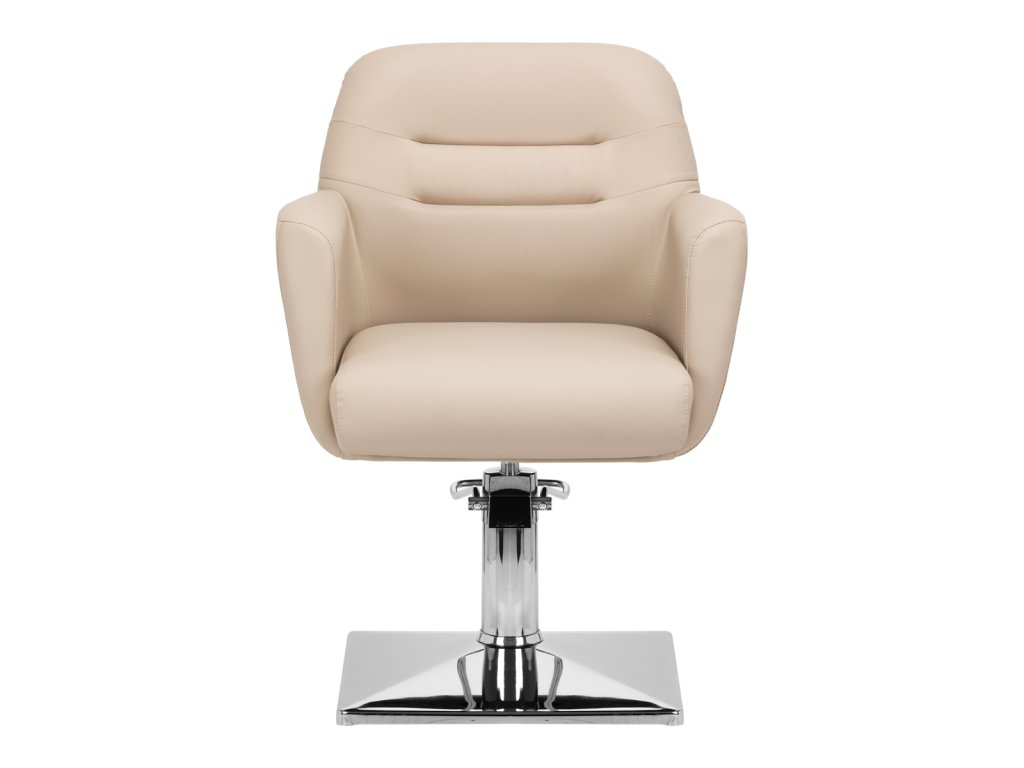 Pevný základzaručuje stabilitu počas používania. Vďaka hladkému povrchu so zrkadlovou úpravou sa tento prvok ľahko udržiava v čistote. Sedadlo s penovou výplňou zabezpečujevysoký komfort používania a pohodlie aj počas mnohohodinových procedúr. Mechanizmus úplného otáčania robí prácu kaderníka efektívnejšou a pohodlnejšou. Opierky na ruky umiestnené vo vhodnej výške umožňujúsprávna poloha ramien klienta - to znamená, že neskrýva hlavu do ramien ani sa nehrbí - čo jednoznačne uľahčuje presné vykonávanie ošetrení vrátane strihania vlasov.