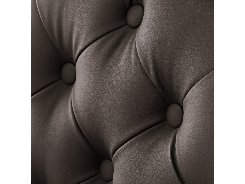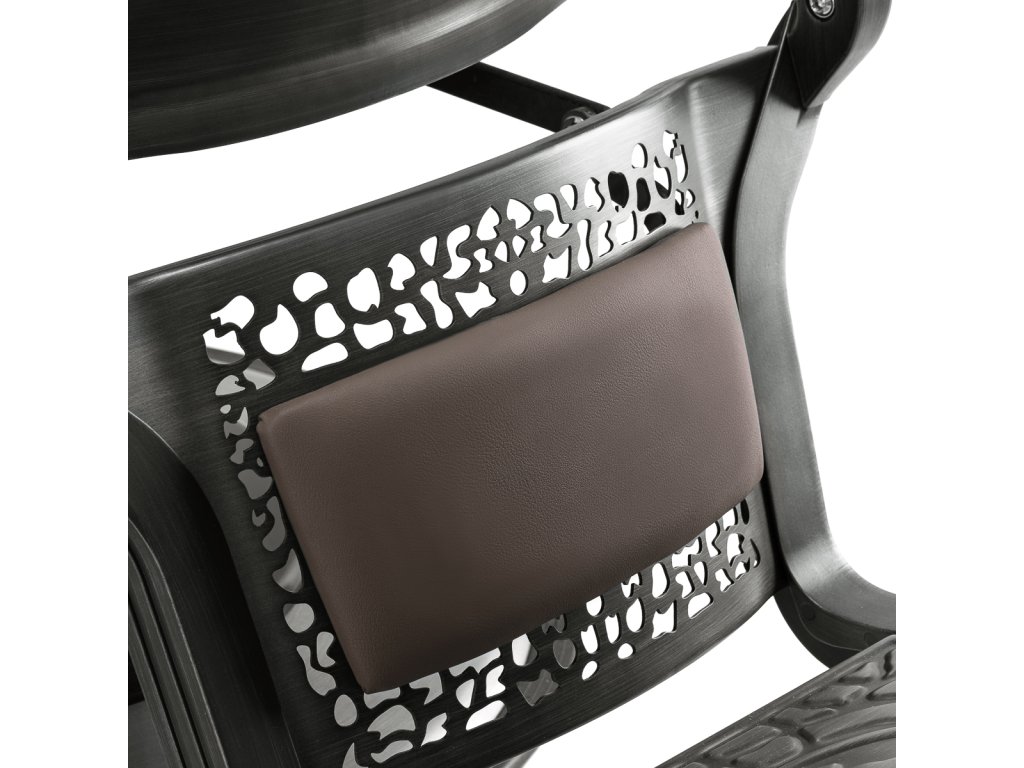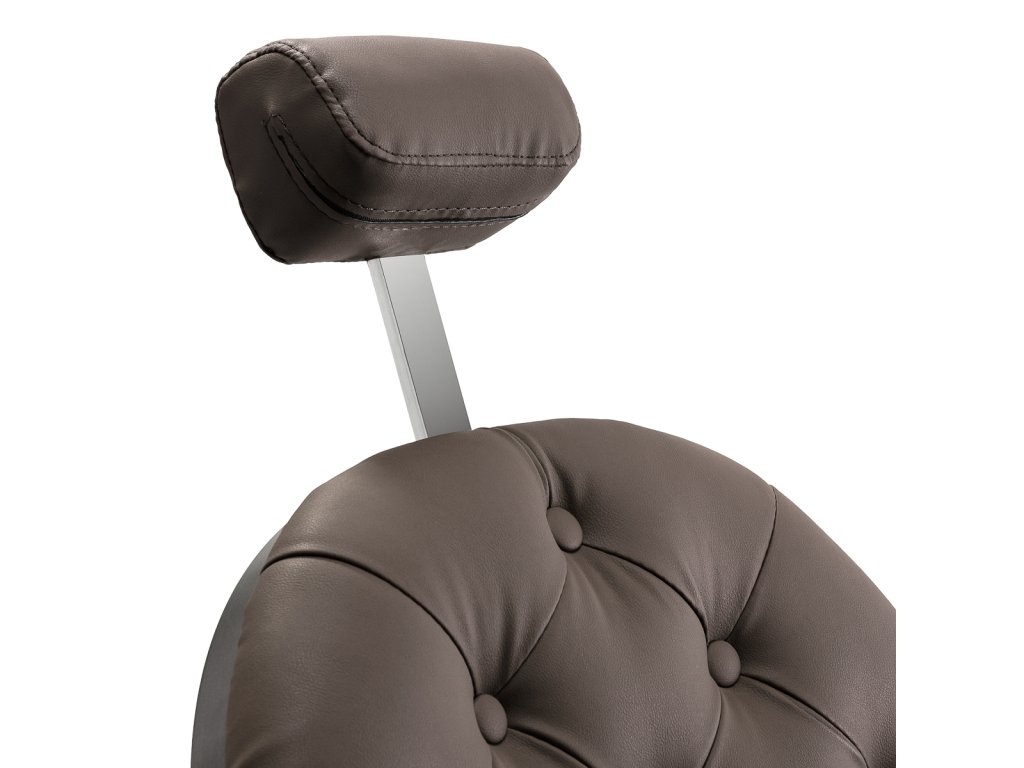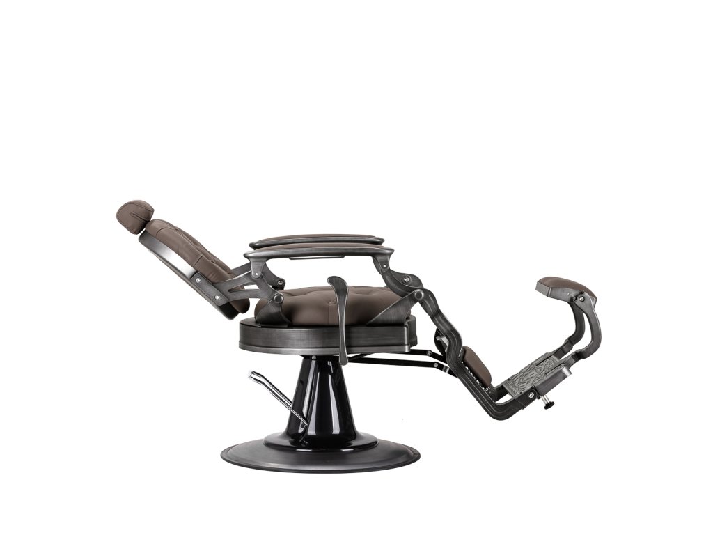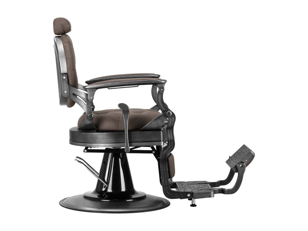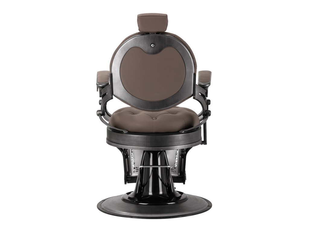 Pevná základná konštrukcia zaručuje stabilitu a vysoký komfort používania. Výplň sedadla z trvanlivej peny odolnej proti deformácii a čalúnenie z na dotyk príjemnej syntetickej kože s matnou povrchovou úpravou zaručujúdlhodobá životnosť a pohodlné používanie nábytku. Vďaka použitým materiálom je zariadenieodolné voči vlhkosti, trvanlivé a ľahko sa čistia. Poťah v odtieňoch hnedej farby s prešívaním a ozdobnými gombíkmi spolu so zdobenou podnožkou mu dodáva jedinečný charakter. Kreslo s výrazným dizajnom odkazujúcim na vintage štýl dokonale zapadá do atmosféry holičstiev a umocňuje ich jedinečnú atmosféru.