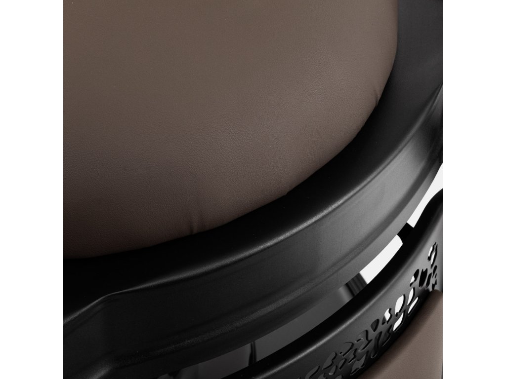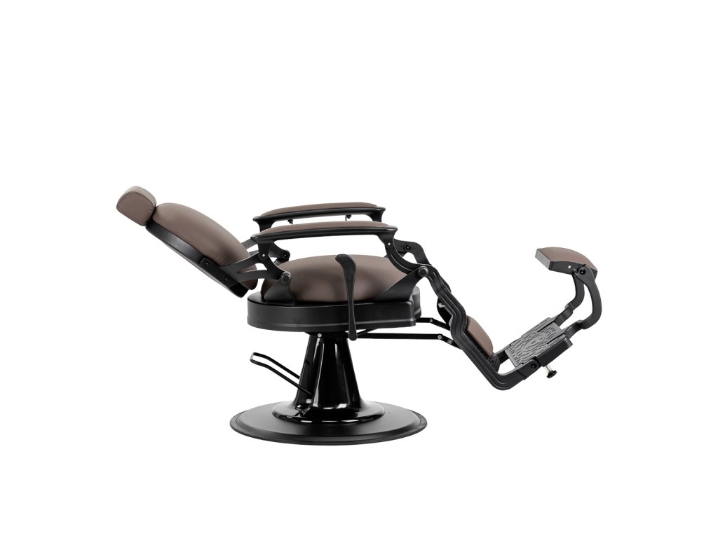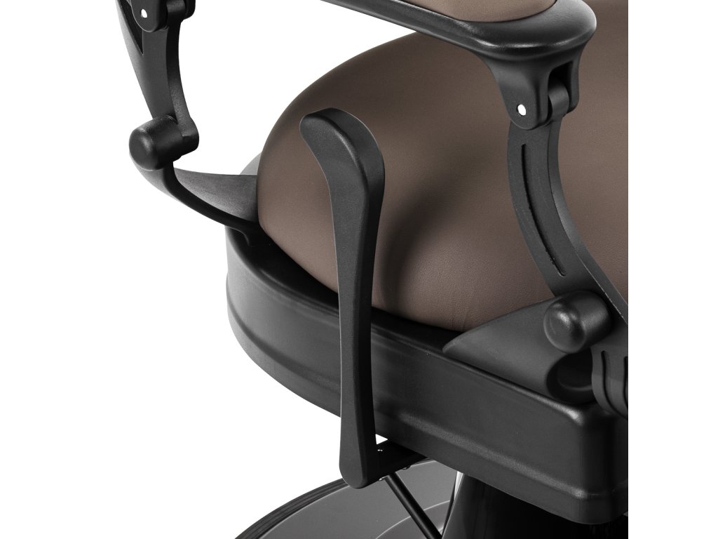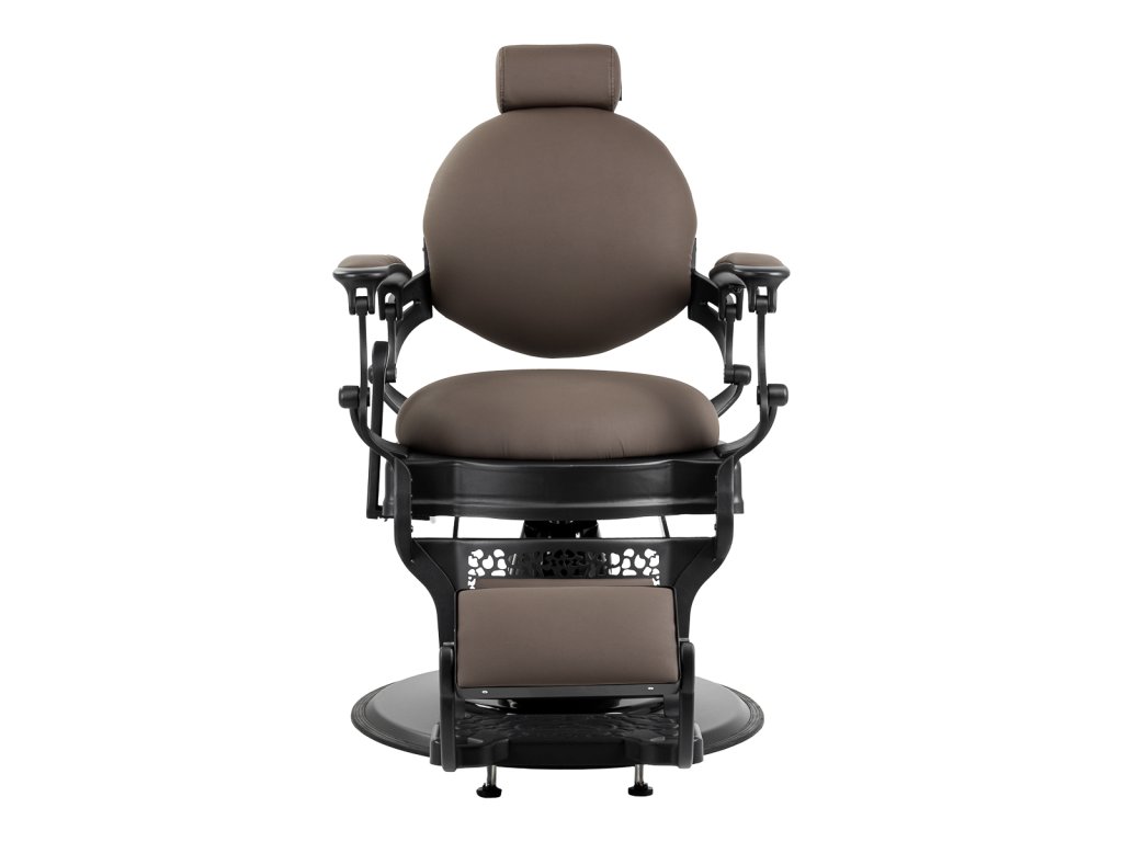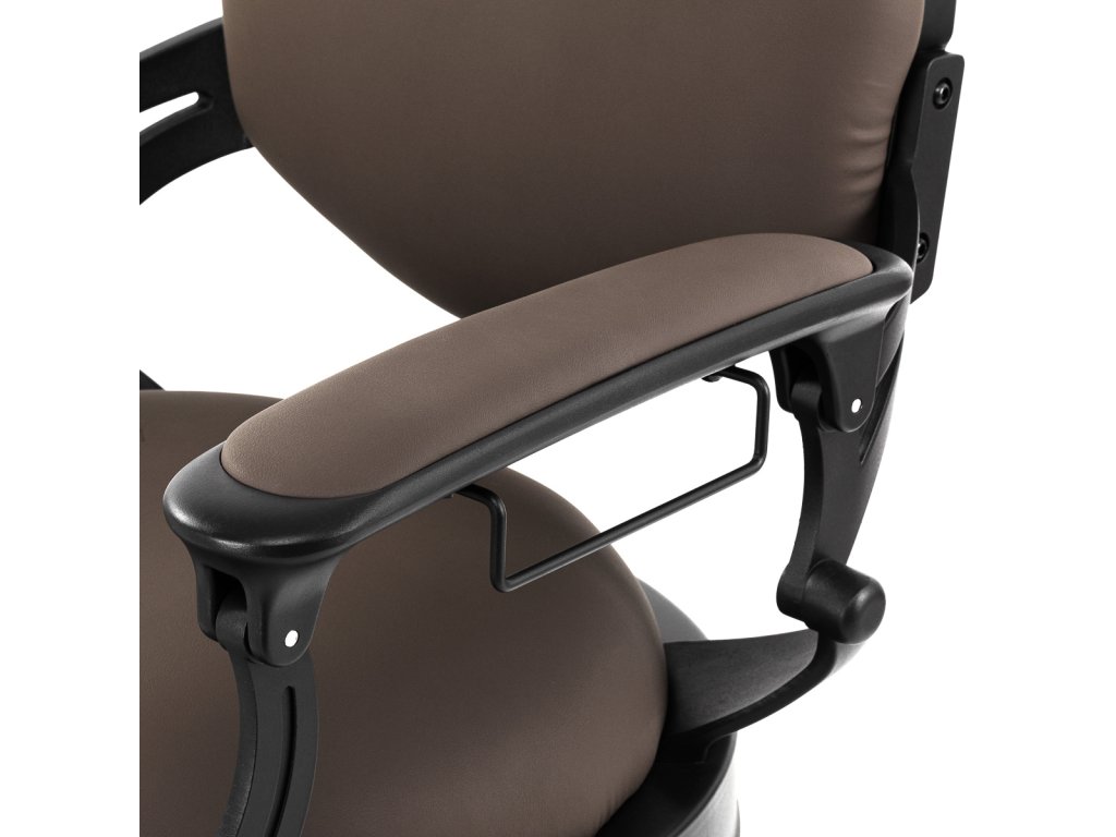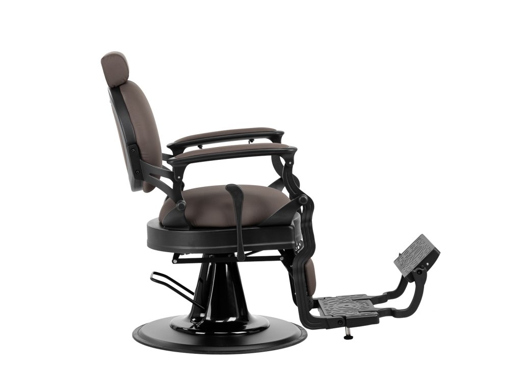 Pevná základná konštrukcia zaručuje stabilitu a vysoký komfort používania. Výplň sedadla z trvanlivej peny odolnej proti deformácii a čalúnenie z na dotyk príjemnej syntetickej kože s matnou povrchovou úpravou zaručujúdlhodobá životnosť a pohodlné používanie nábytku. Vďaka použitým materiálom je zariadenieodolné voči vlhkosti, trvanlivé a ľahko sa čistia. Poťah v odtieňoch hnedej farby spolu so zdobenou podnožkou mu dodáva jedinečný charakter. Stolička so svojímvýrazný dizajn odkazujúce na vintage štýl, dokonale zapadajú do atmosféry holičstiev a umocňujú ich jedinečnú atmosféru.